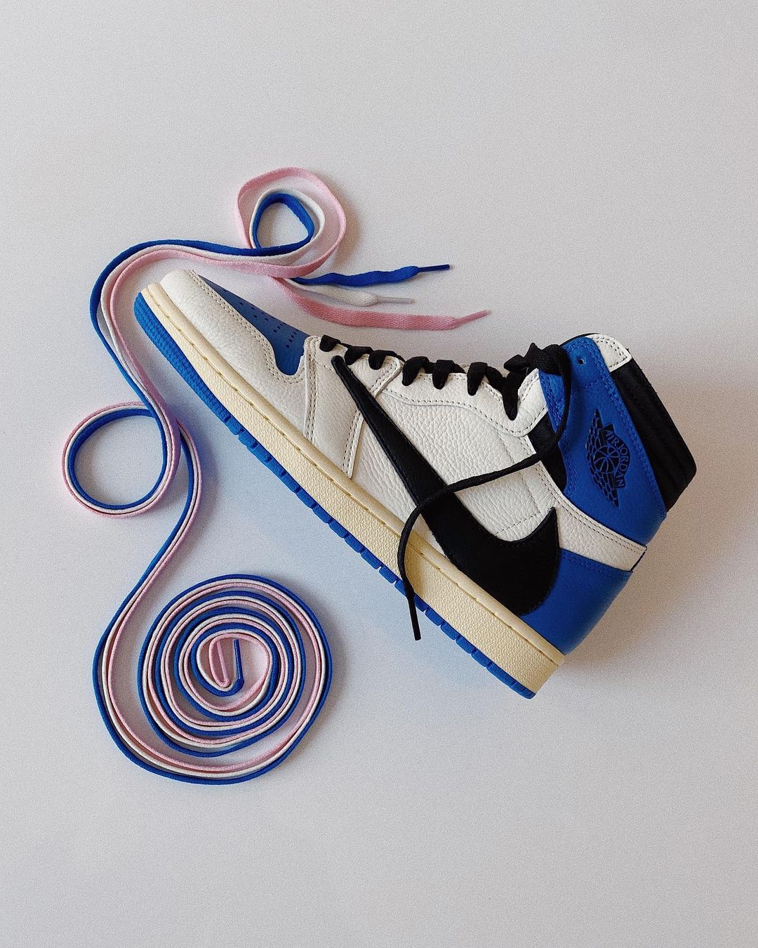 没中也没关系,因为近期还有一个更重磅的联名,那就是 Travis Scott x Fragment x Air Jordan 1 闪电倒钩。