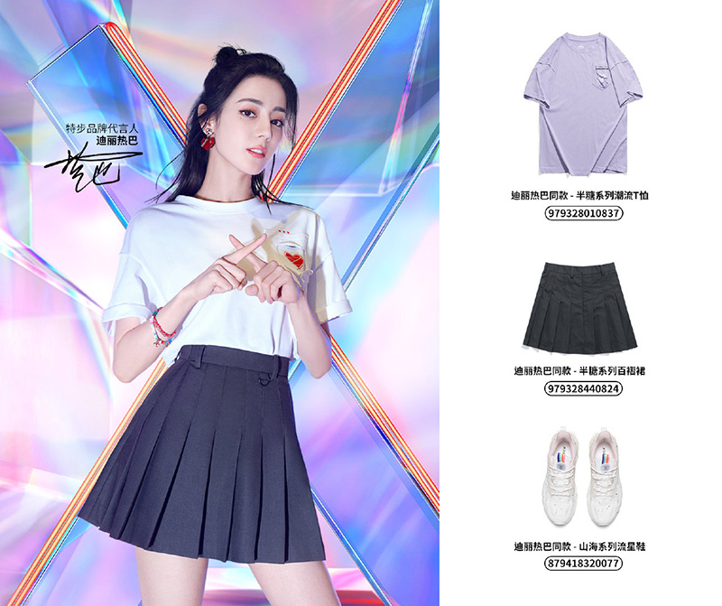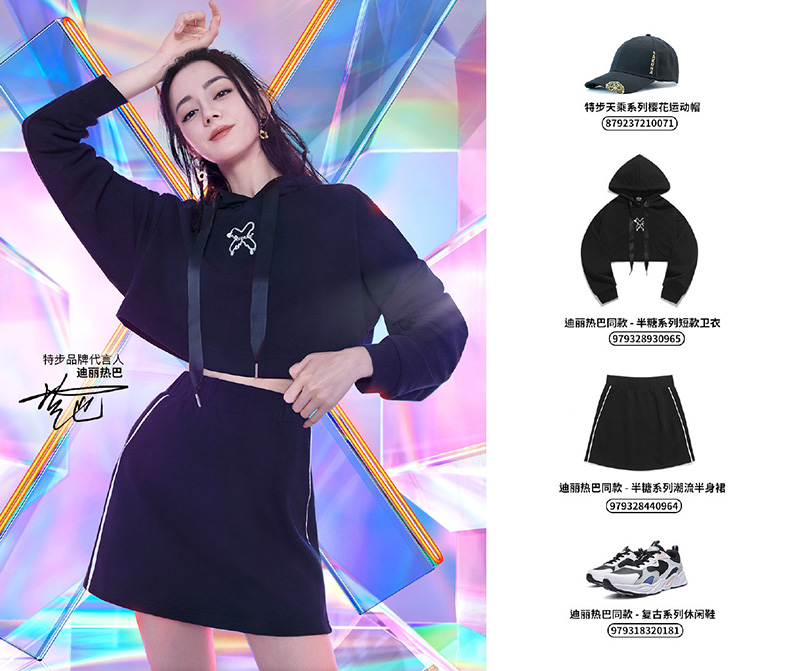 目前迪丽热巴两组 Look 的同款服饰已在特步线上、线下店铺同步上架,感兴趣的小伙伴千万不要错过!