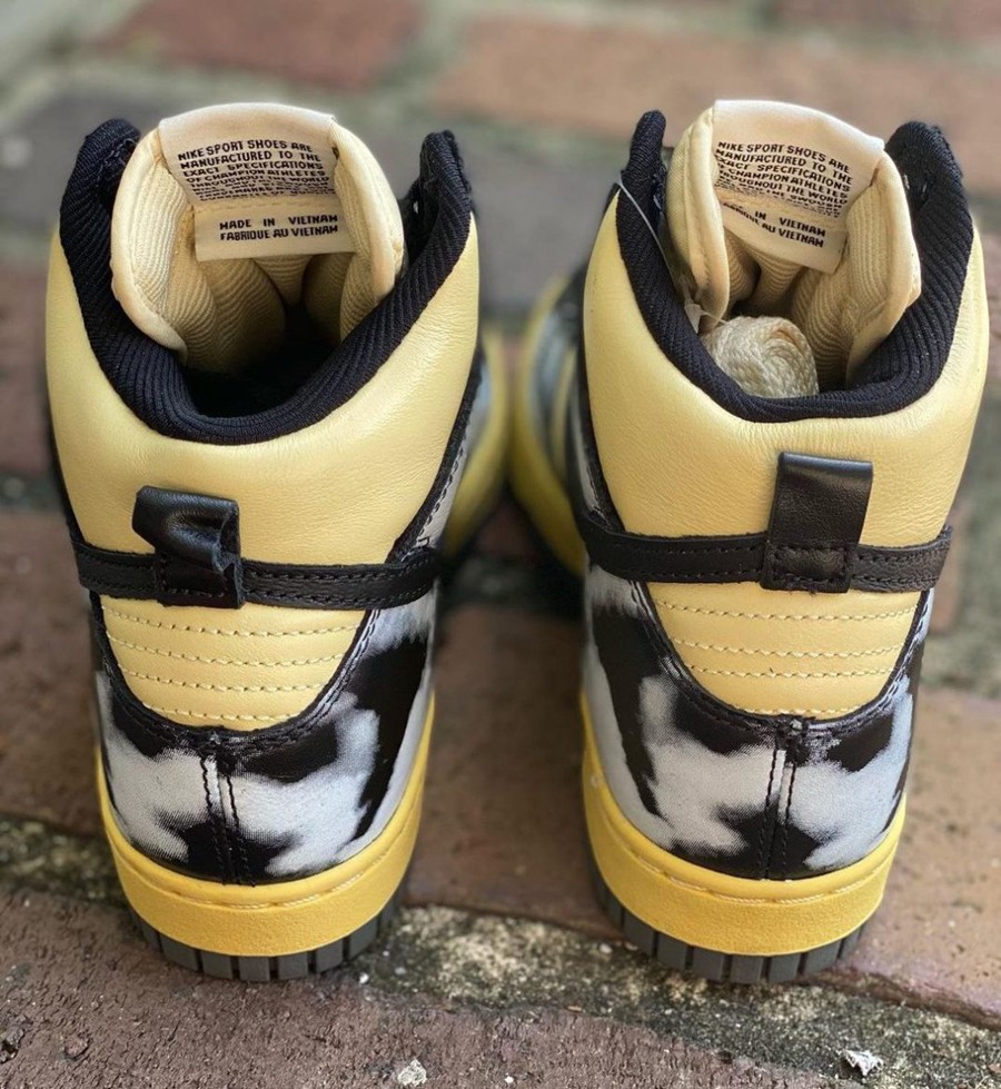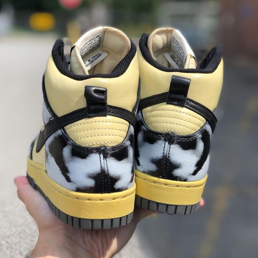 另一款,鞋面采用黄色皮革,搭配黑色扎染印花覆盖鞋身框架。