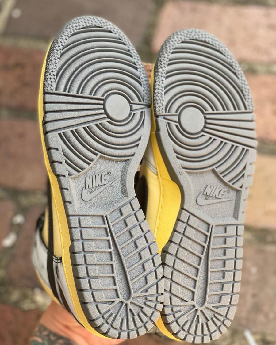 鞋侧红色的 Swoosh 呼应鞋款配色,搭配氧化发黄的中底,更是将复古执行到底。