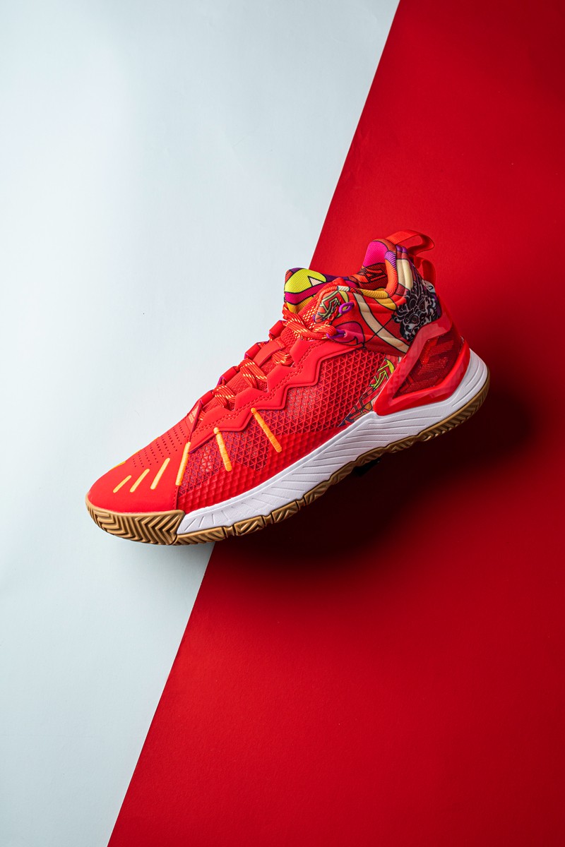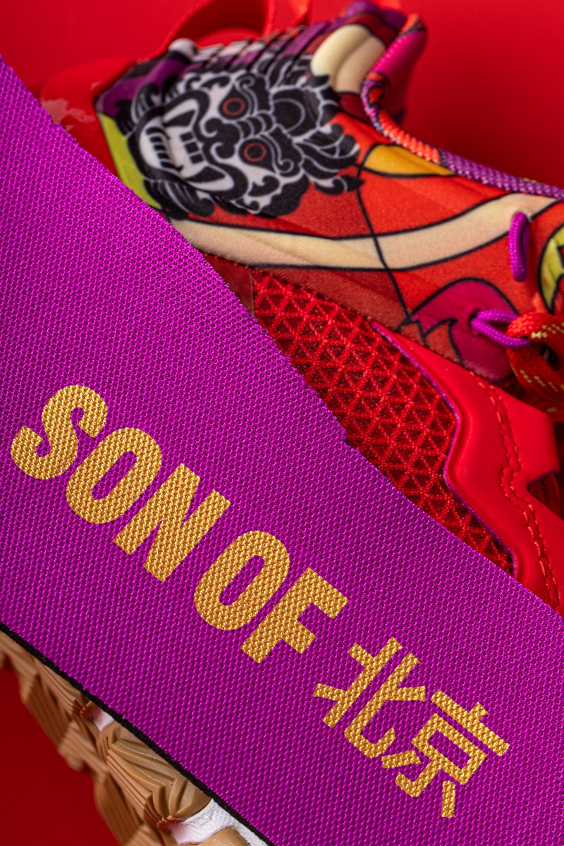 整双配色充满浓郁的中国气息,鞋面使用大面积中国红呈现。