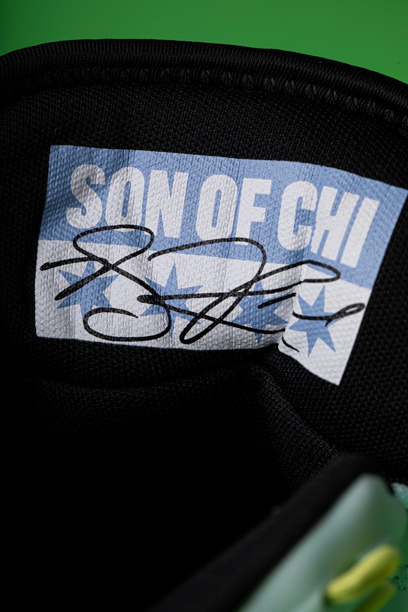 鞋舌内侧印有 Son of Chi 字样,背景的四颗星图案致敬芝加哥市旗。