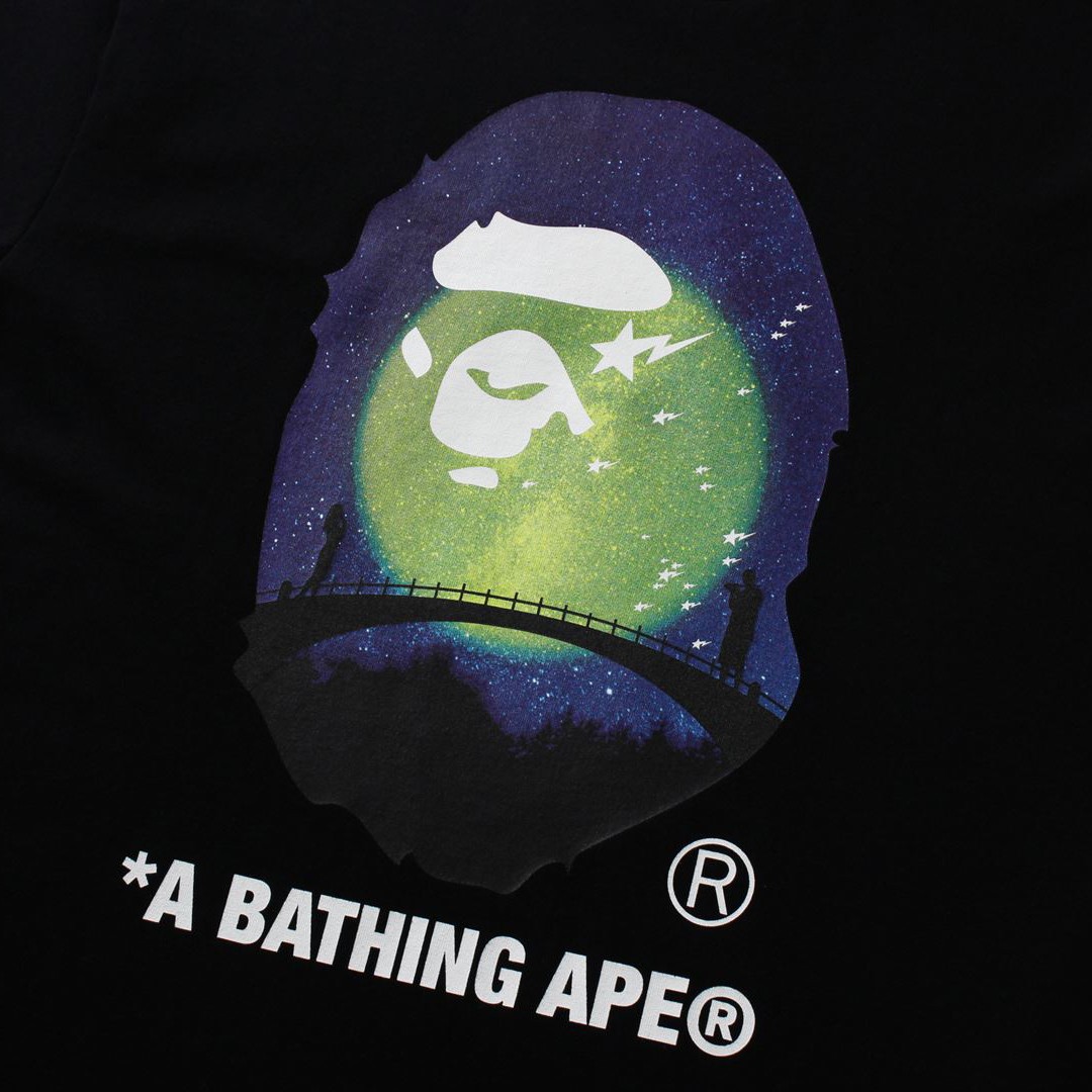 包含两款 T 恤单品,其一为经典的猿人头款式,印有满月、银河、流星及鹊桥相会的场景。