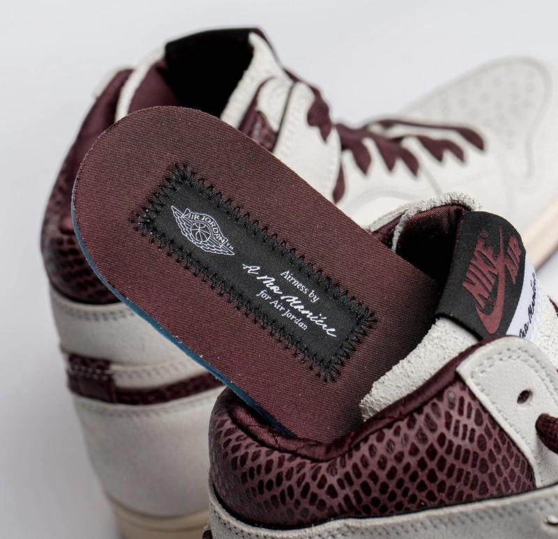 鞋垫也同样精彩,将 Air Jordan 经典飞翼 Logo 和 A Ma Maniere 采用缝制的工艺点缀其上。