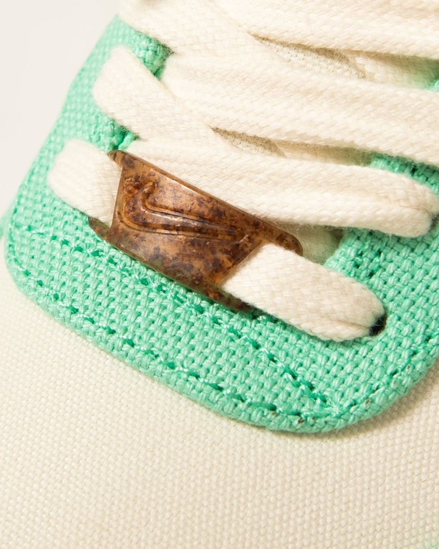鞋面以米色帆布材质覆盖,鞋身框架采用绿色打造。