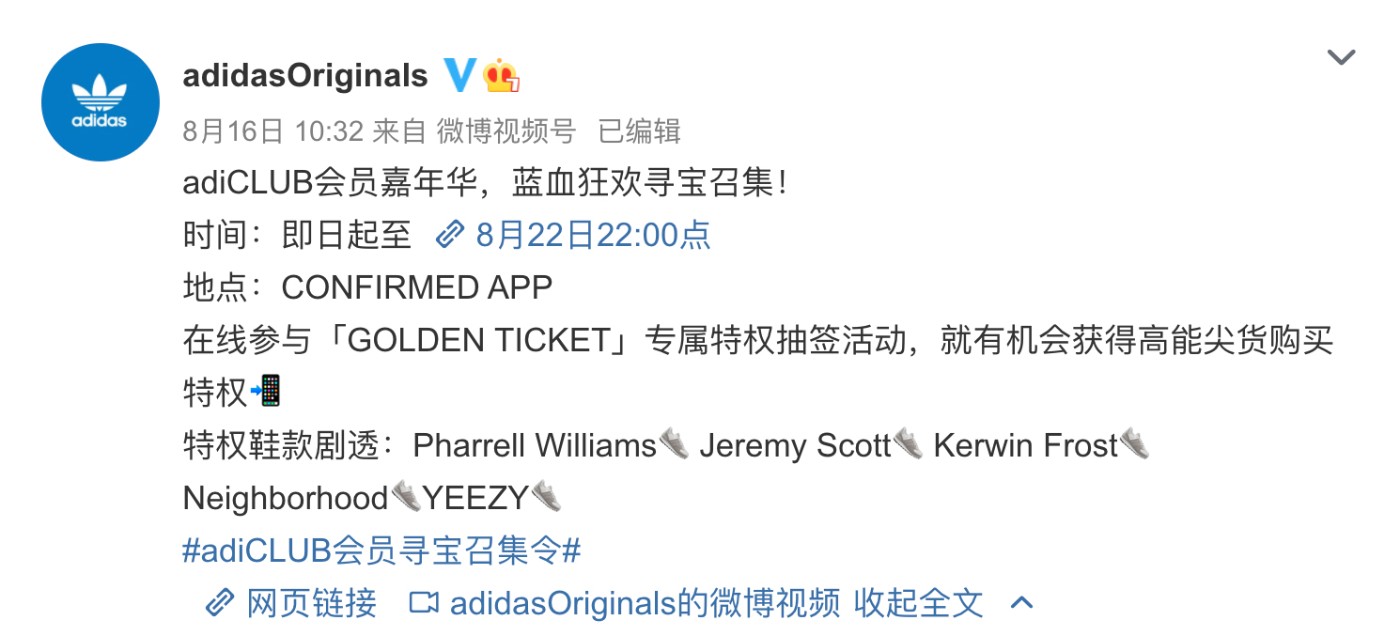 好在昨天 adidas Originals 在微博预告了金奖券奖品名单。