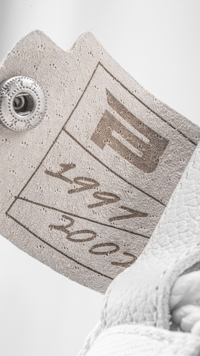霸道独白鞋面采用极简的纯白丹宁布,视觉效果极具质感,搭配棉麻鞋带与木制纹理鞋带头,营造简洁却不失个性的外观。