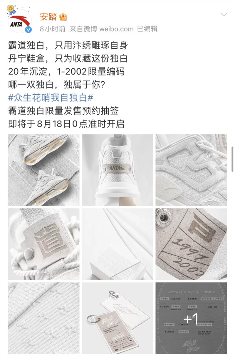为了致敬安踏霸道系列的诞生元年,霸道独白限量发售 2002 双,每双均有唯一编码。