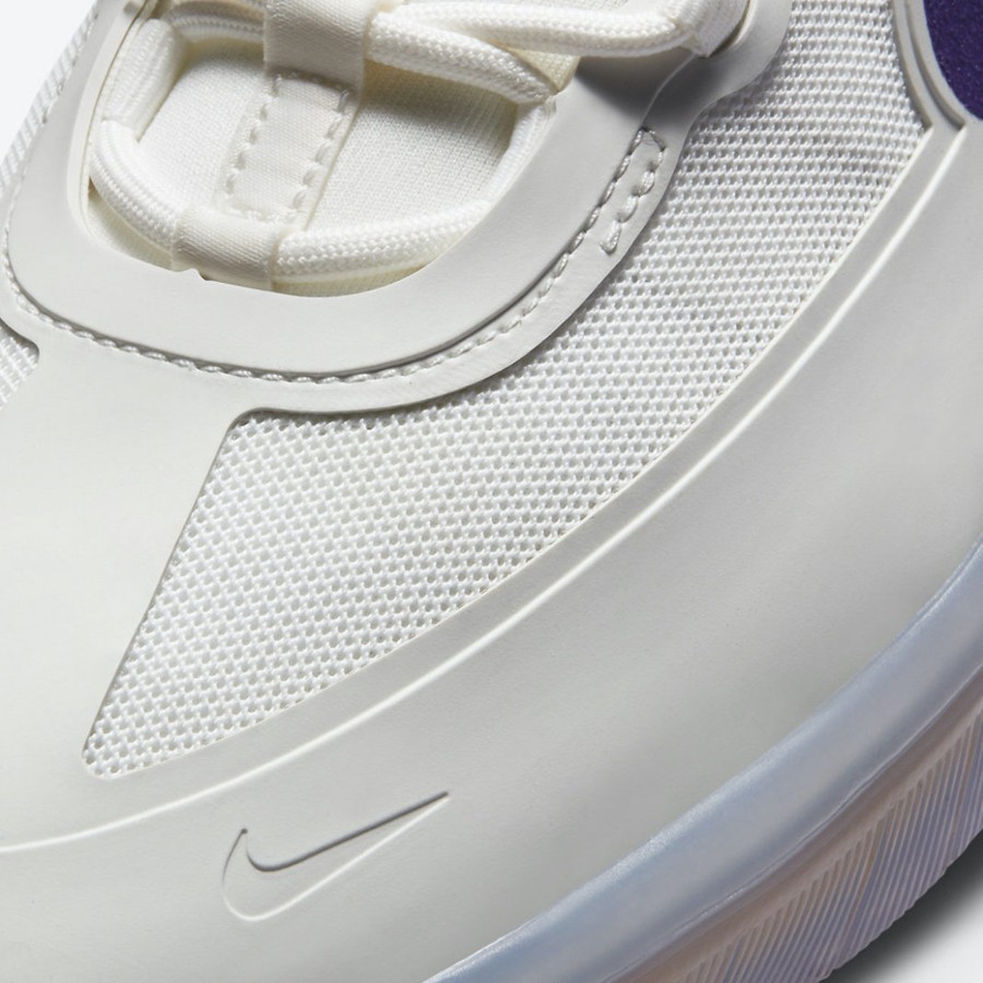 整双鞋以白色为主调,辅以紫色 Swoosh 点缀,呈现出简洁的视觉体验。