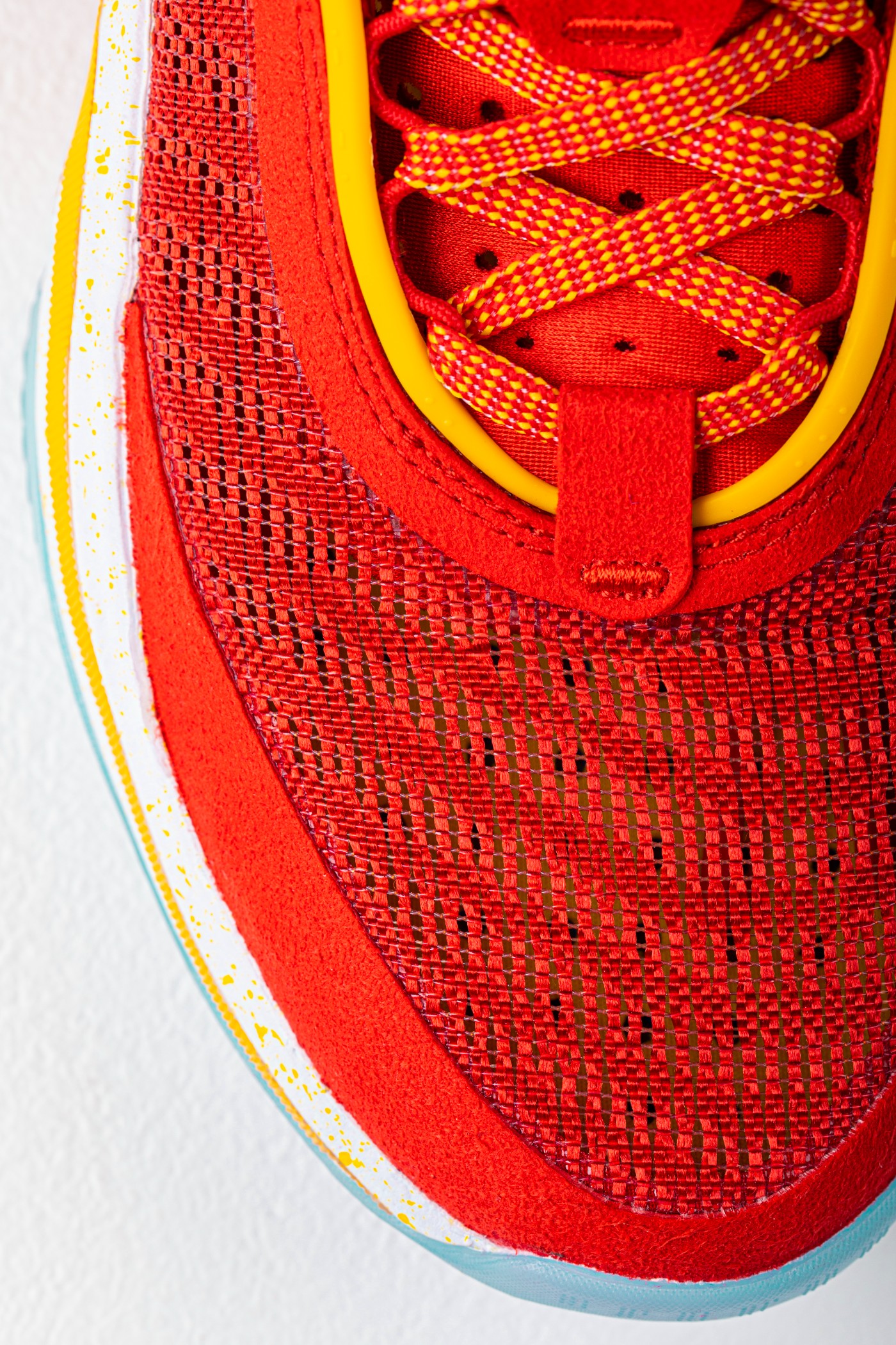 Air Jordan 36 之所以可以更轻,主要是因为他采用了全新的 Leno-weave 鞋面,这种材料能够在不牺牲鞋面强度的前提下,很大程度地减轻鞋款重量。