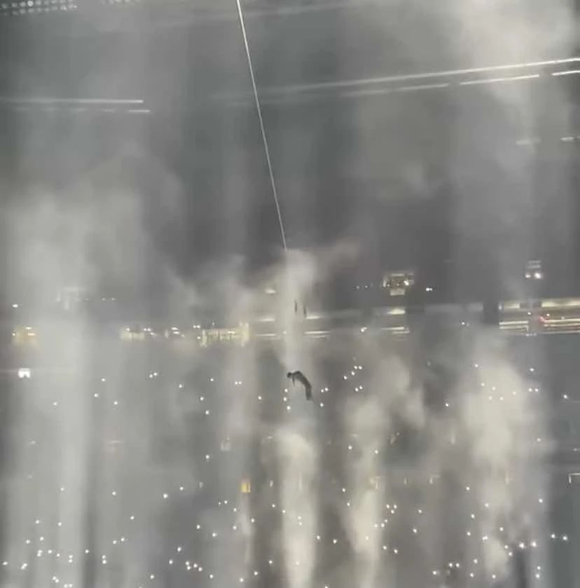 但这都不算什么,最重要的是在一个聚集了 4 万人的 7000㎡ 的体育场中,侃爷几乎可以说是一声没吭,也不唱歌,也不说话。