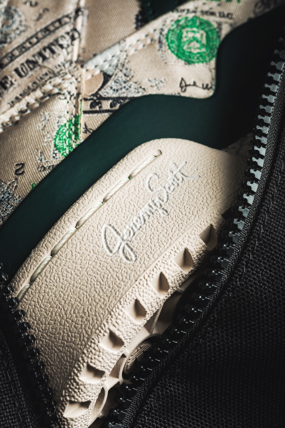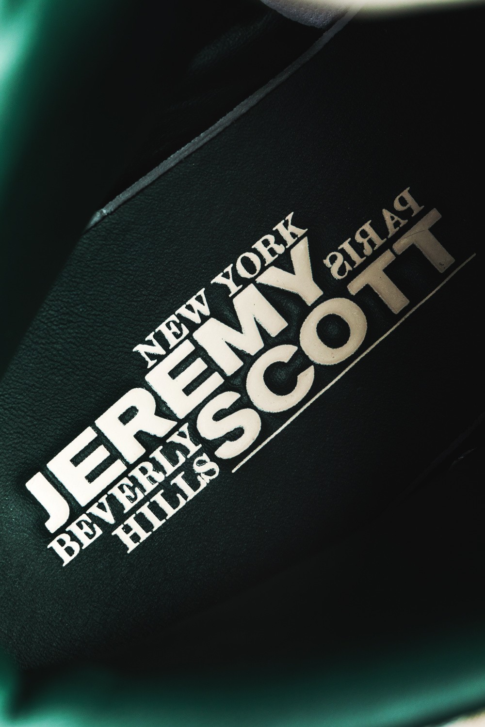 中底后跟刻有 Jeremy Scott 签名字样。