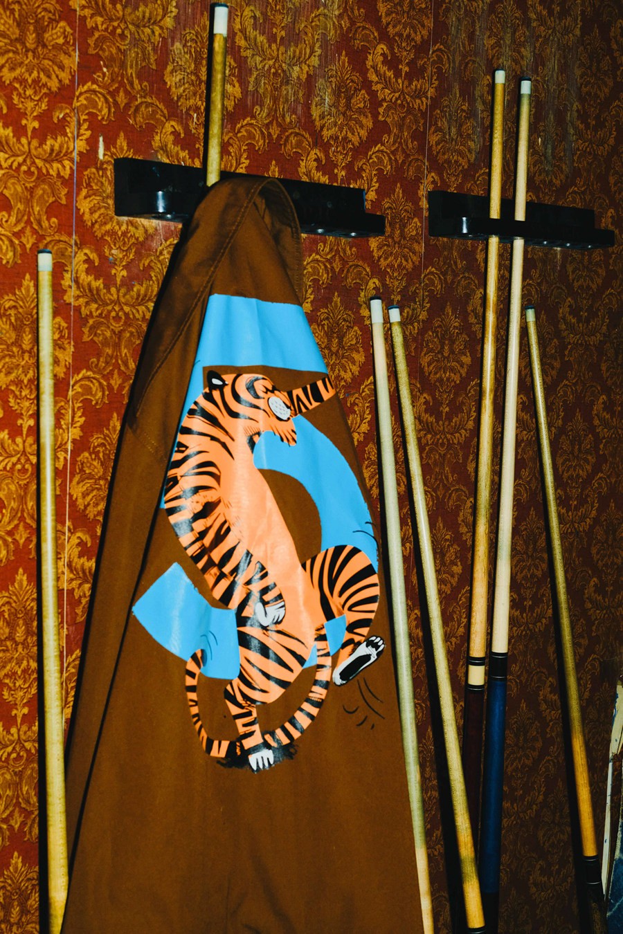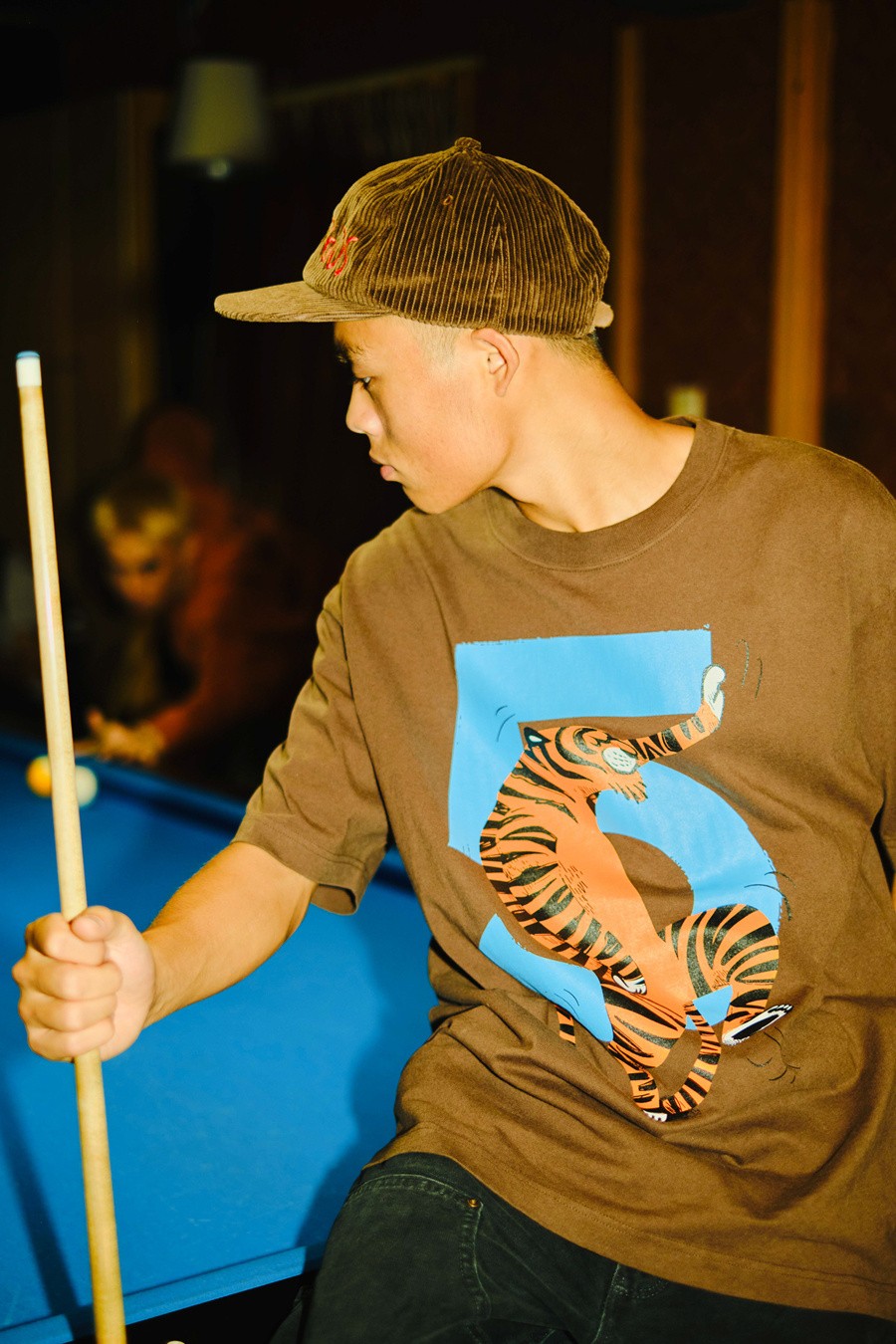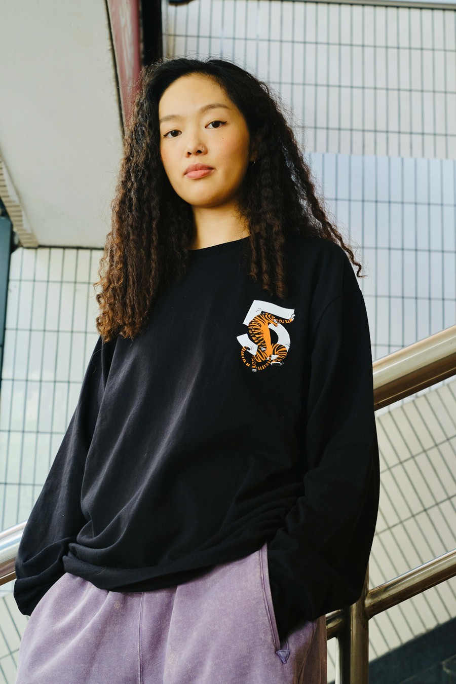 此次夹克以教练夹克为原型,舞动的老虎图案结合数字 5 ,皆展现出周年庆祝之意。