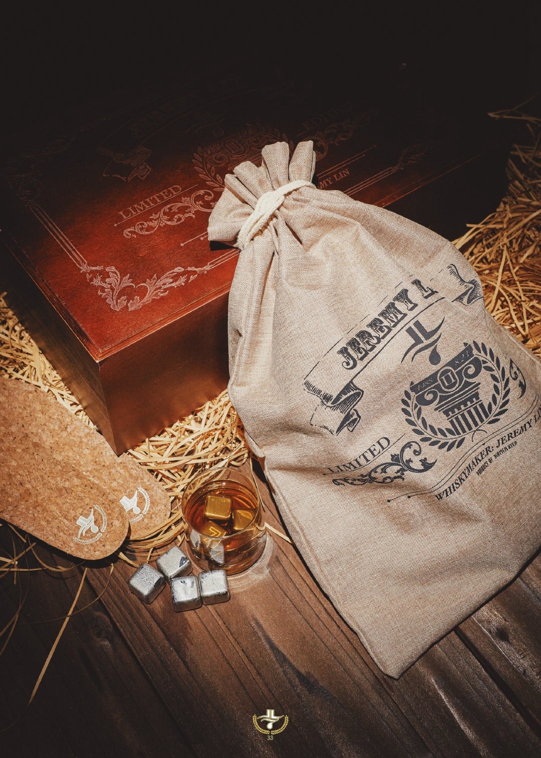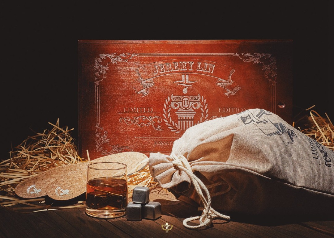 首先映入眼帘的当然是硕大的长方形木质盒子,正面雕刻有花体的 Jeremy Lin 的字样和硕大的林书豪专属 Logo。