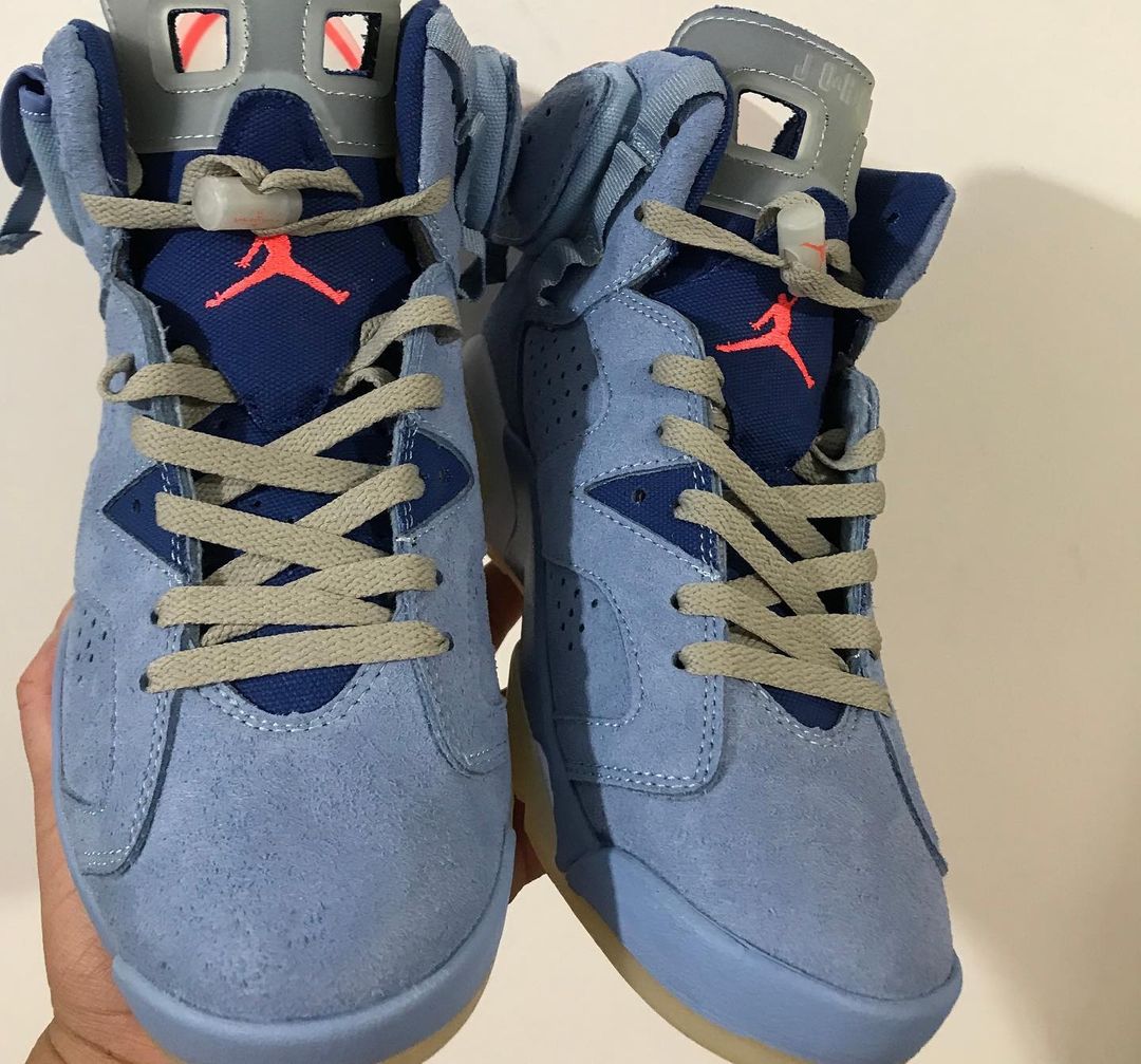 4 月 2.0 版本的首发配色 Travis Scott x Air Jordan 6 “British Khaki” 正式发售,随后在 6 月又曝出一双蓝色款。