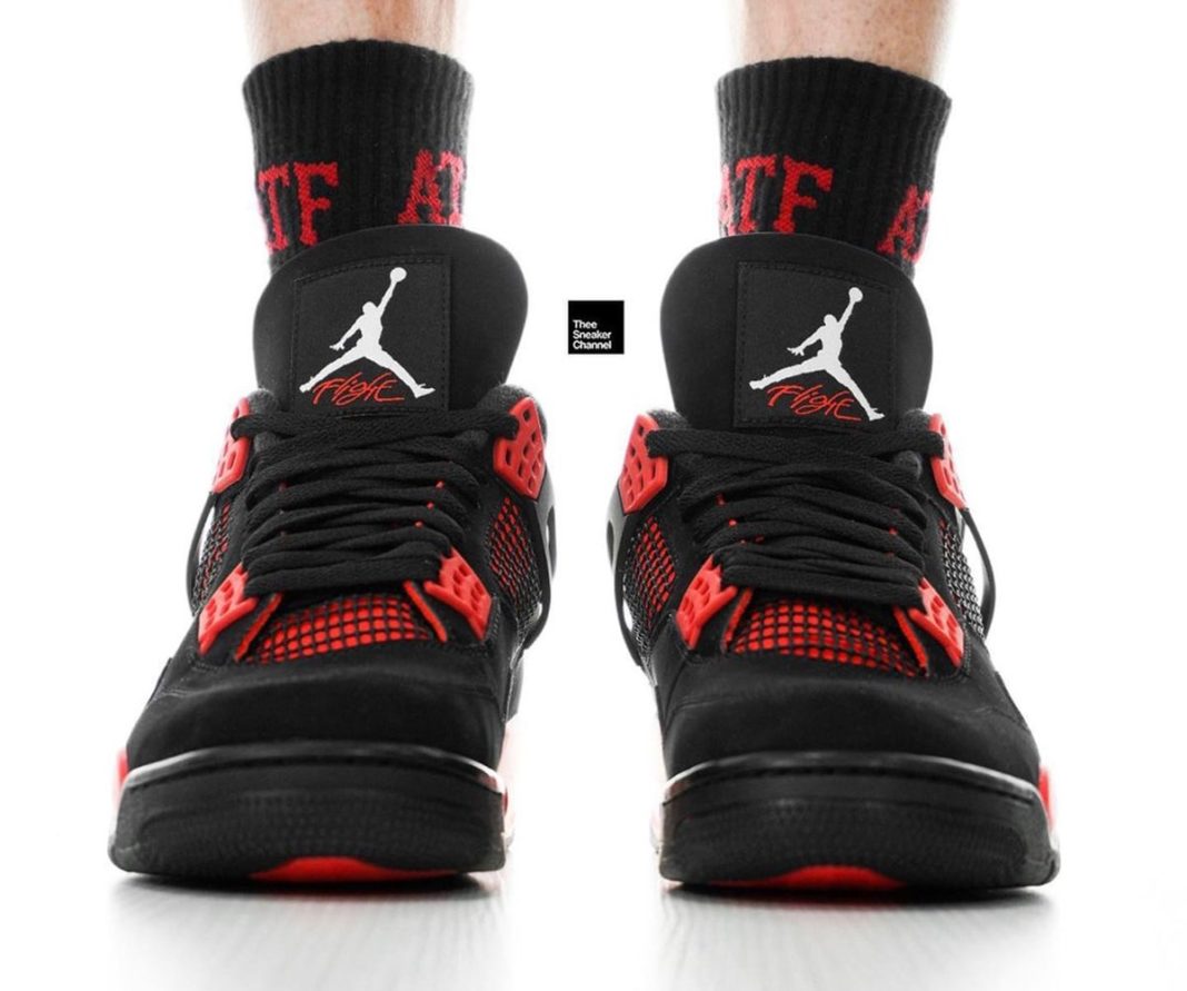 近日,Air Jordan 4 “Red Thunder” 上脚图曝光。