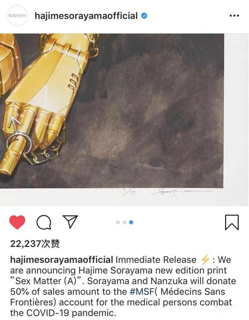 ▼ 空山基 ins 捐款声明