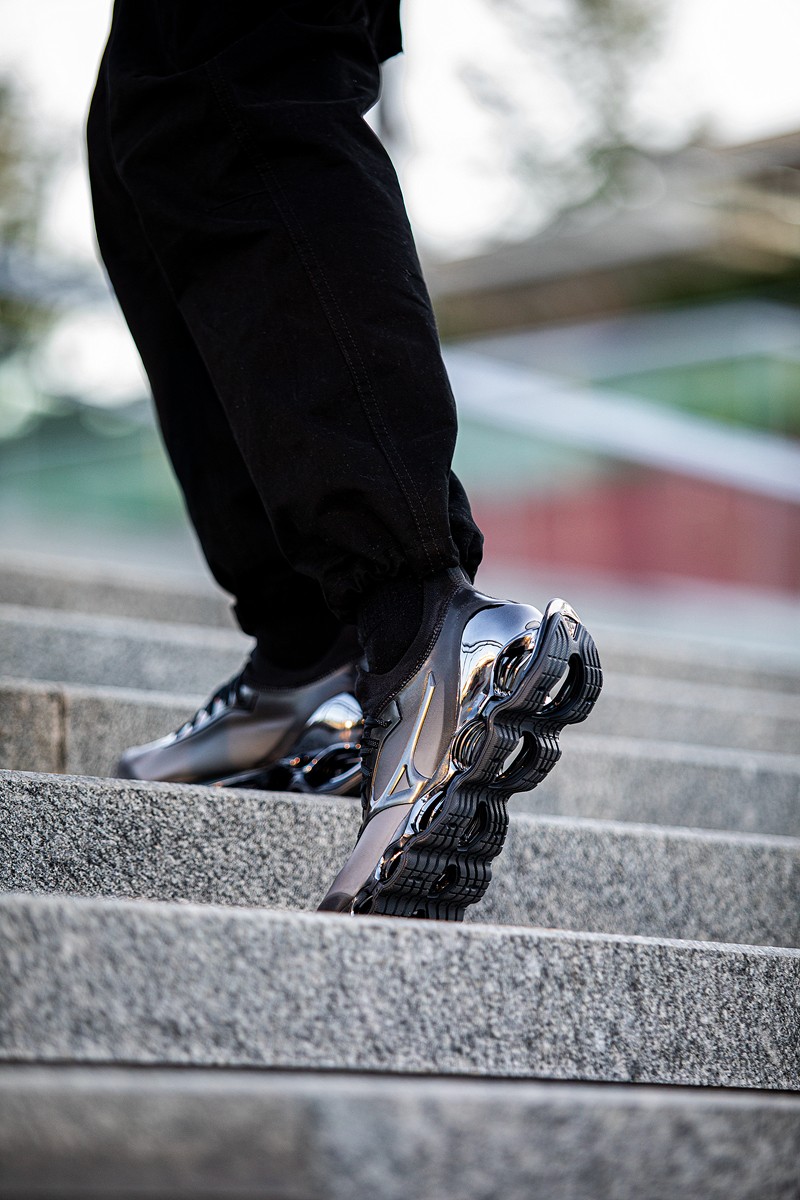这次联名依旧以 Mizuno 旗下的 WAVE PROPHECY 预言系列第十代鞋型为基础打造。