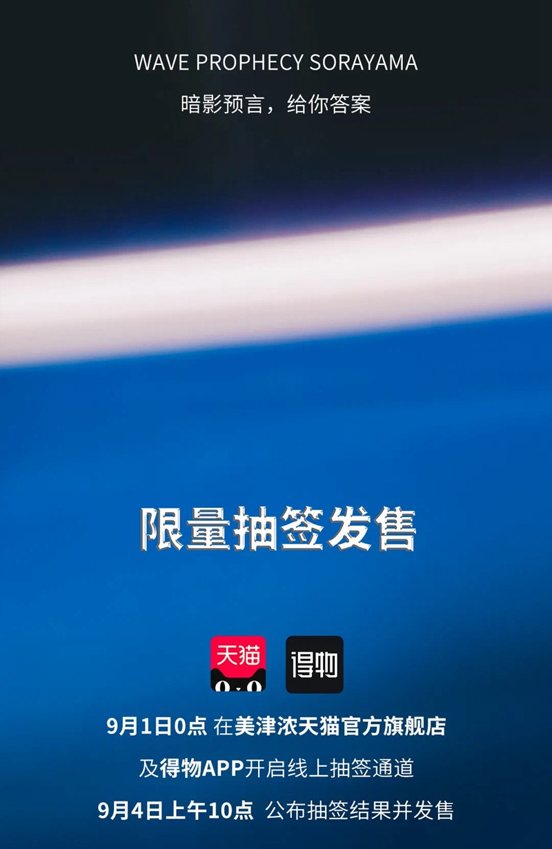 9 月 1 日开启线上抽签通道,9 月 4 日上午 10 点,天猫和得物将公布抽签结果并发售,同时美津浓上海啦啦宝都店、宁波阪急店也将同步上线发售,喜欢的朋友可千万别错过了。