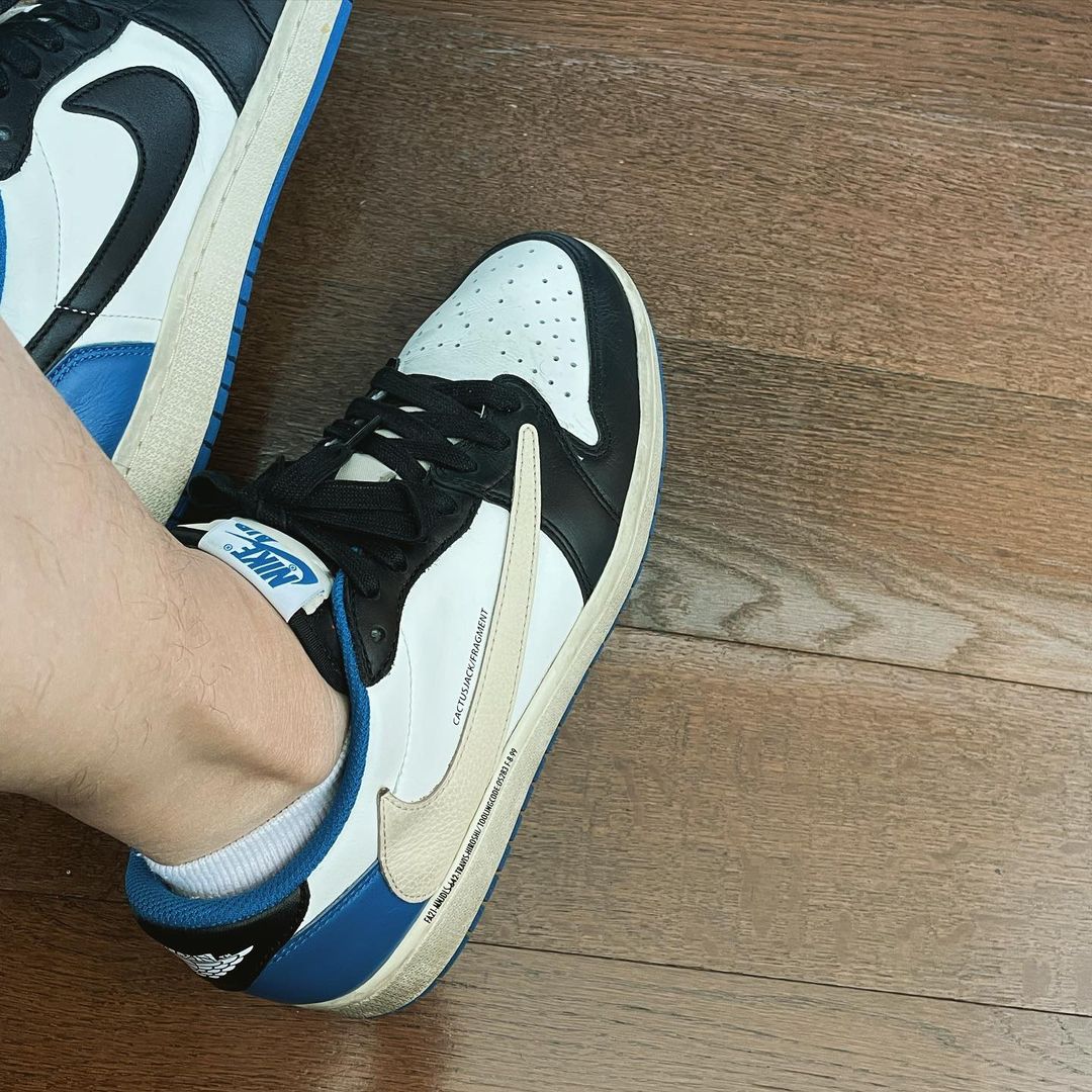 但是不同的地方在于原本位于鞋身内侧中底的文字编号说明出现在了外侧,同时醒目的 Swoosh 上方还带有一行 CATUSJACK/FRAGMENT 字样。