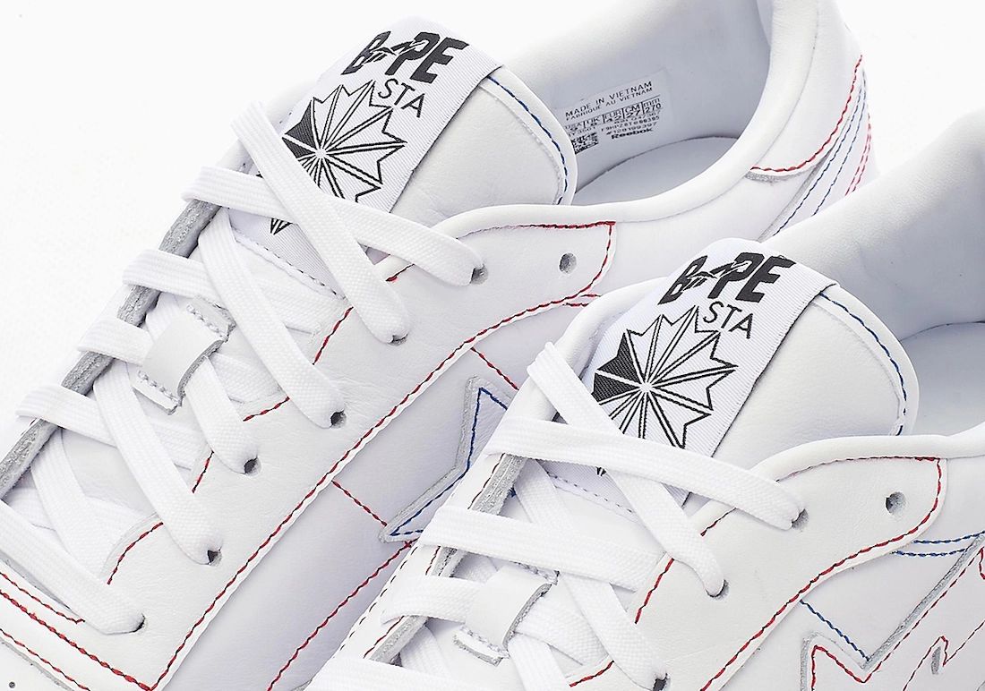 整双鞋采用白色皮质覆盖,搭配 BAPE STA 标志星星 Logo,呈现简约大气的视觉效果。