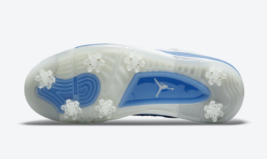 此前曾在 2006 年和 2012 年复刻,到现在已经九年时间。虽然今年发售信息迟迟没有更新,但近日一双高尔夫鞋版的 Air Jordan 4 Golf “Military Blue” 率先出现。