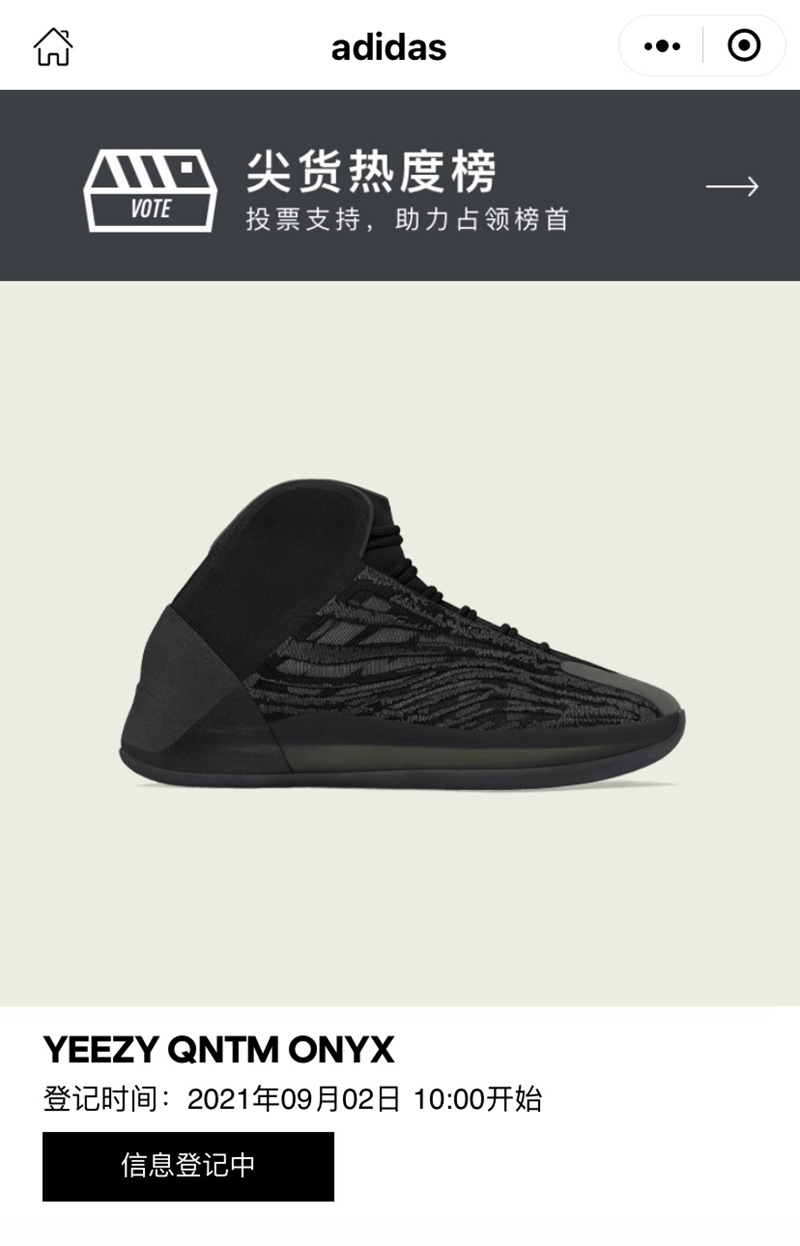全新 adidas Originals YZY QNTM “ONYX” 将于 9 月 10 日在 adidas CONFIRMED APP 以及指定零售商发售,并将推出三种不同规格,现在于 CONFIRMED APP 上已经开启登记。