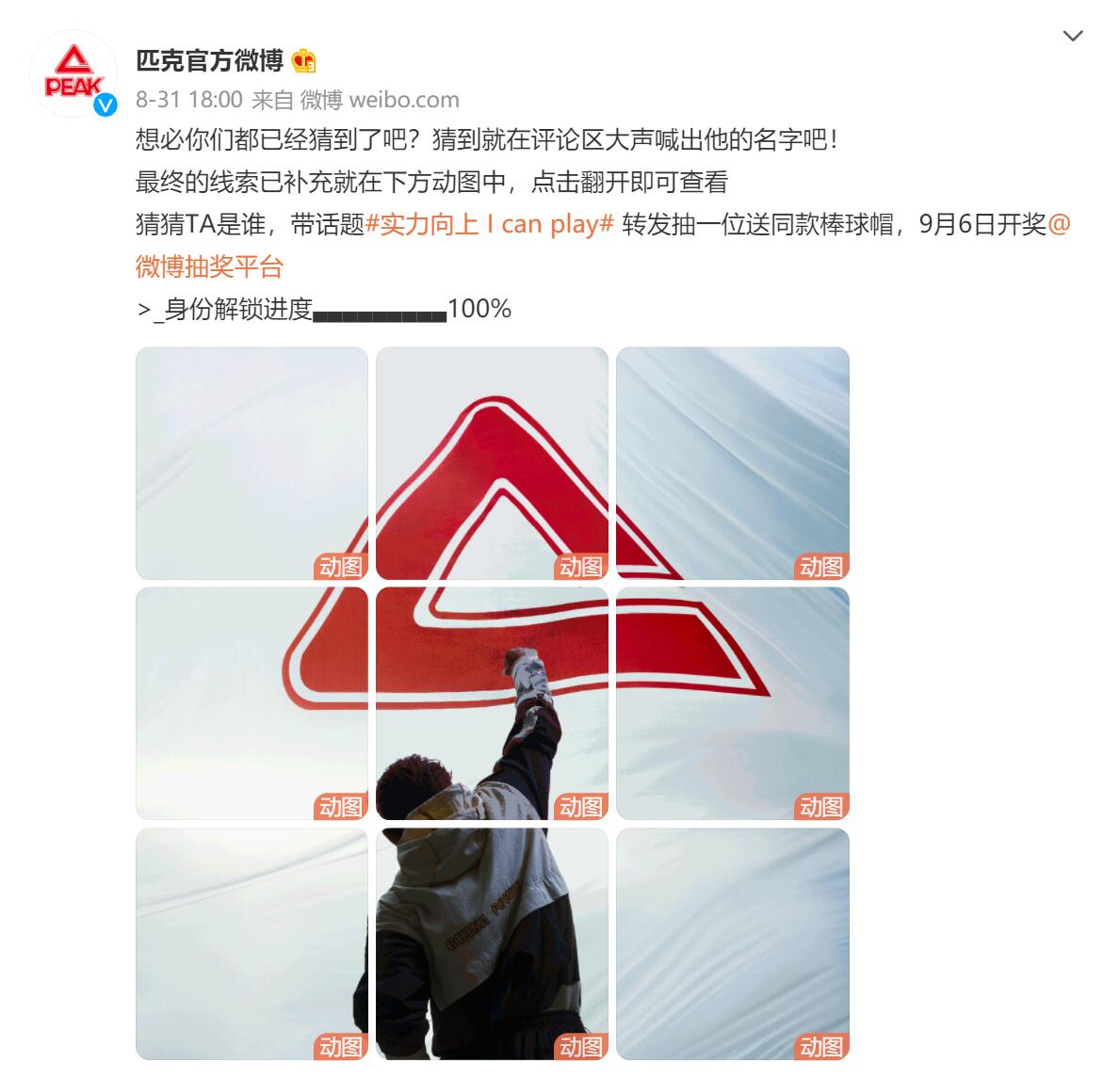 此前匹克仅发布背影照片,也是为此次官宣预热埋下伏笔。