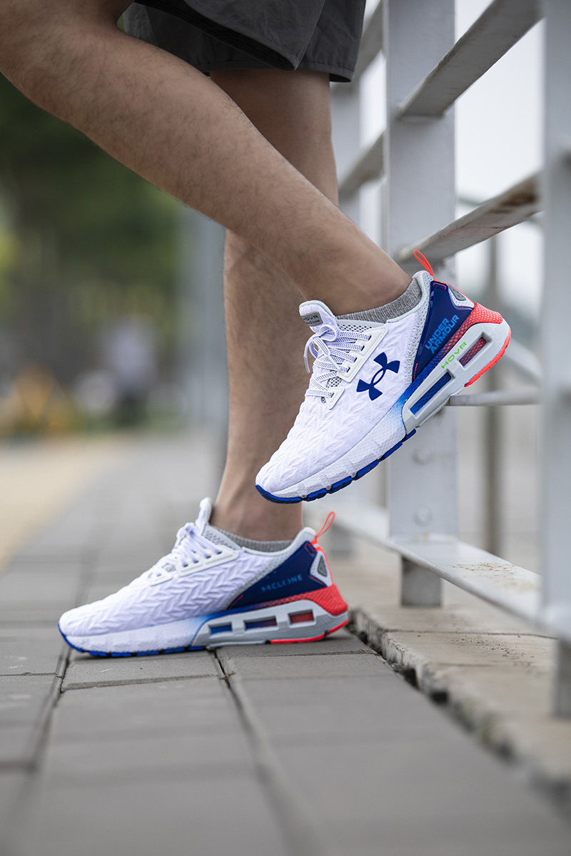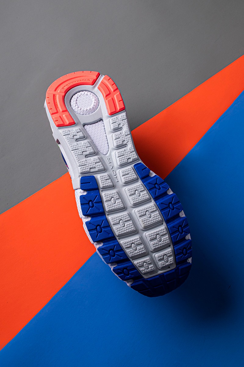 缓震方面,中底 UA HOVR™ 发泡缓震 + 能量网格,覆盖前掌至中足并搭配宽大后跟造型,使奔跑的每一步都能感受更加流畅的缓震效果。