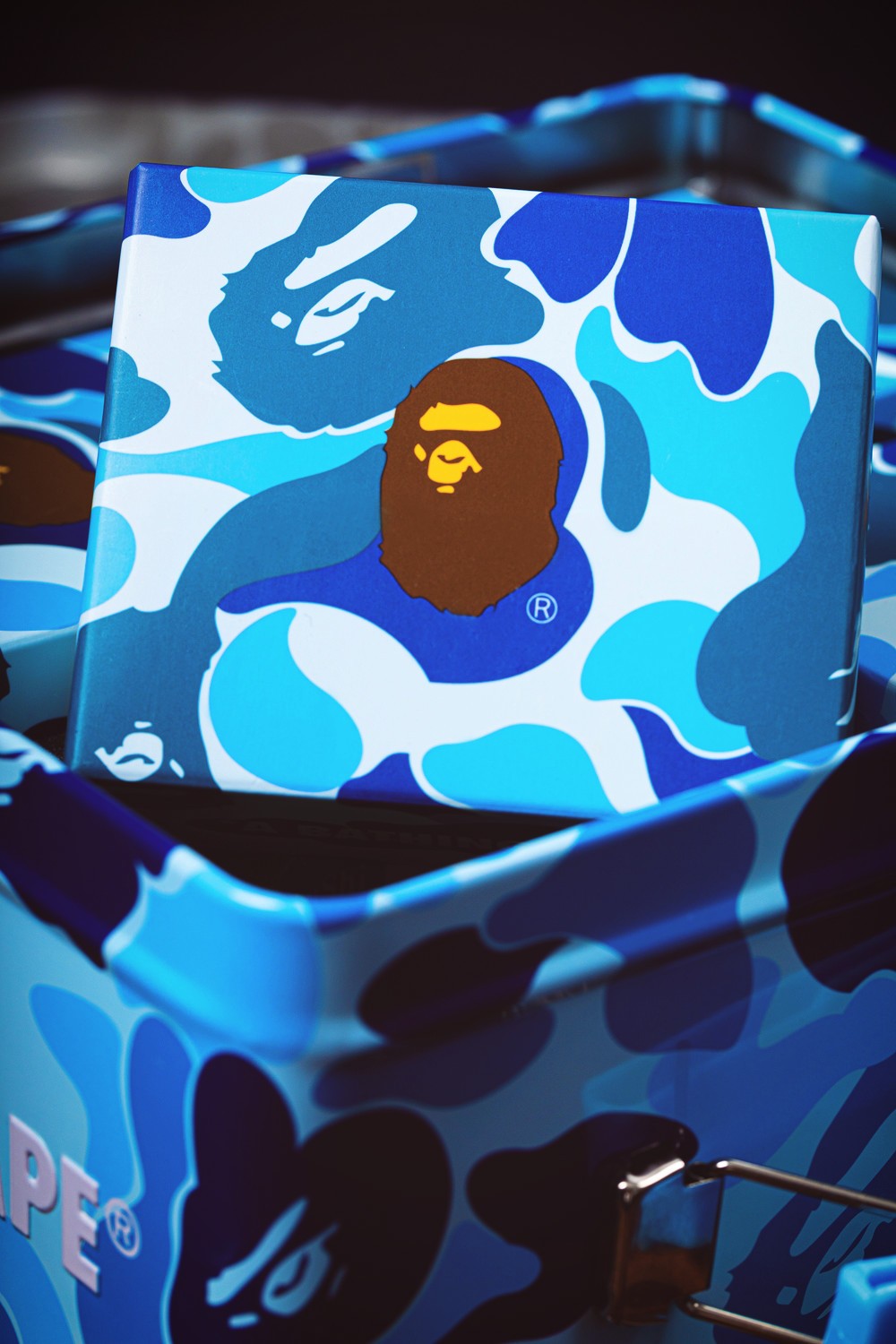 延续了精致的铁盒包装,今年选择蓝色 Color Camo 迷彩图案,结合 3D 立体感官的猿人头 LOGO,清爽又经典。
