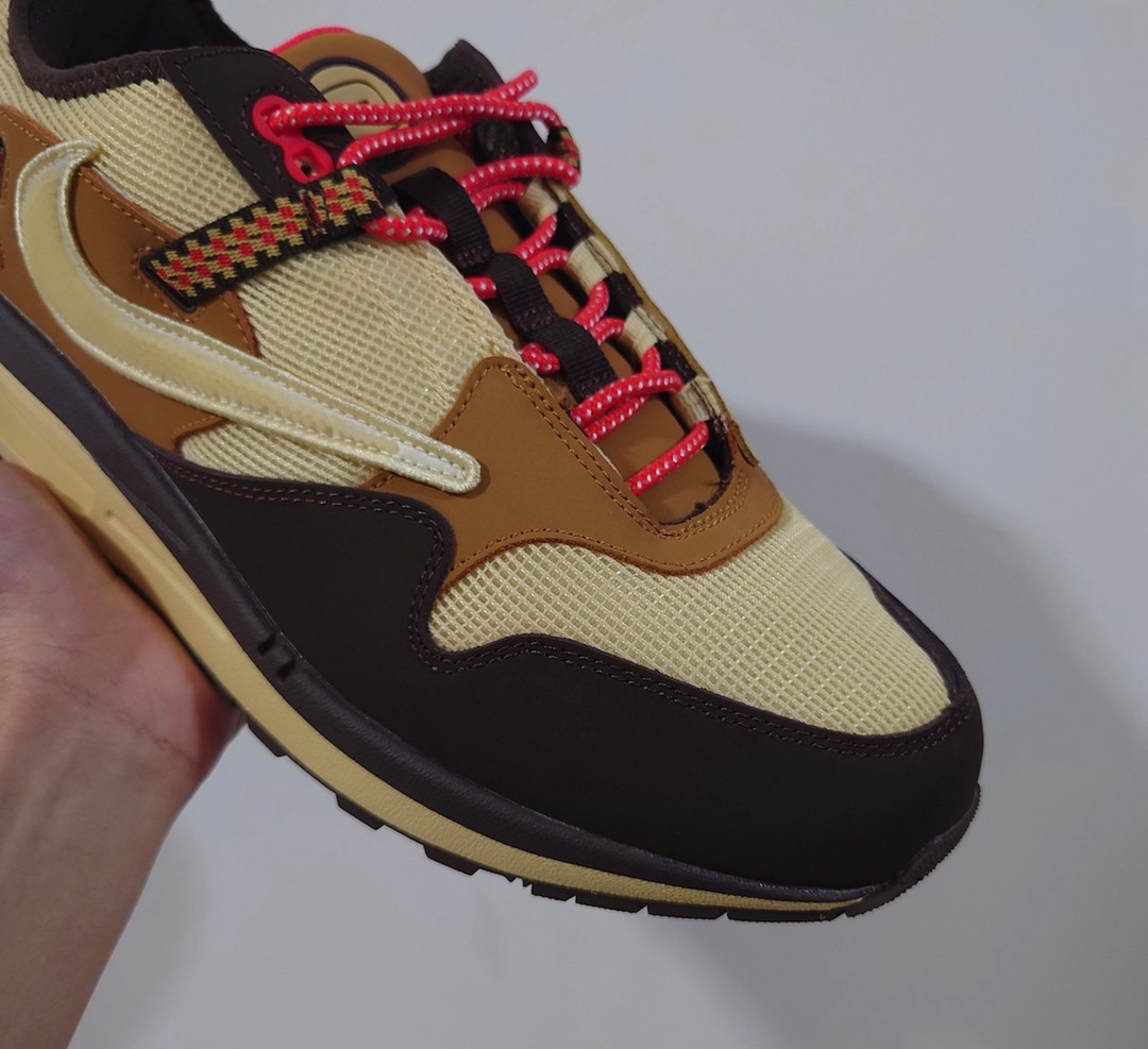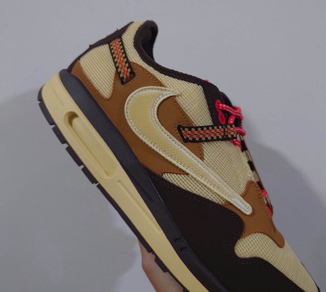 近期,一双曝光已久的 Travis Scott x Air Max 1 最新实物图曝光。