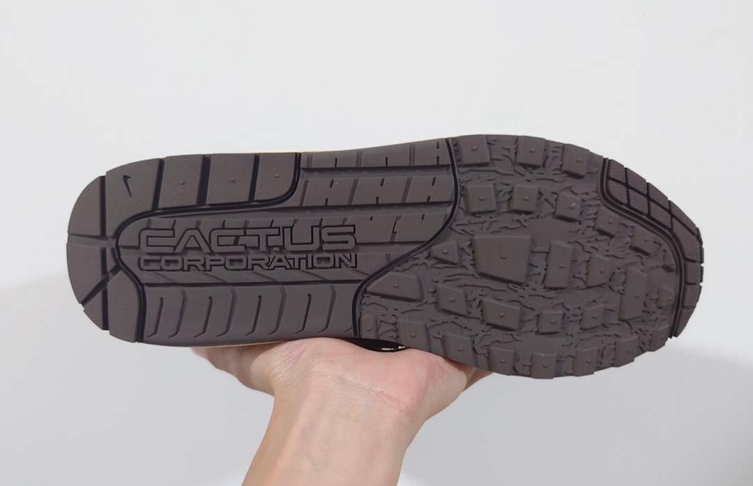 最后以棕色外底收尾,后掌还印有 “Cactus Corporation” 字样,进一步彰显联名身份。
