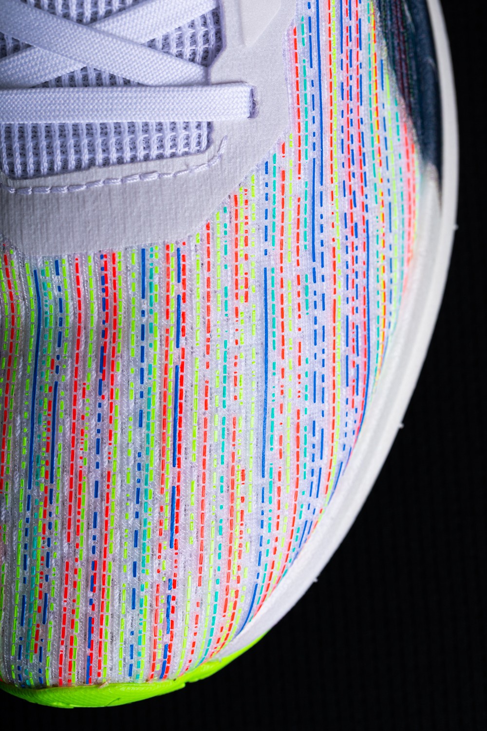 鞋面的设计灵感来源于光线折射后形成的多彩光谱,横线彩条的设计打造出活力满满的视觉效果。