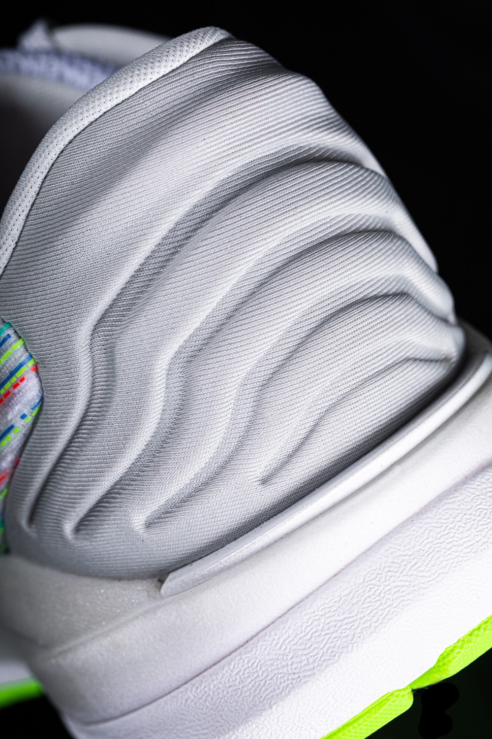 鞋面包裹也十分出色,同时透气性也很不错,后跟褶皱的设计为穿着提供保护。