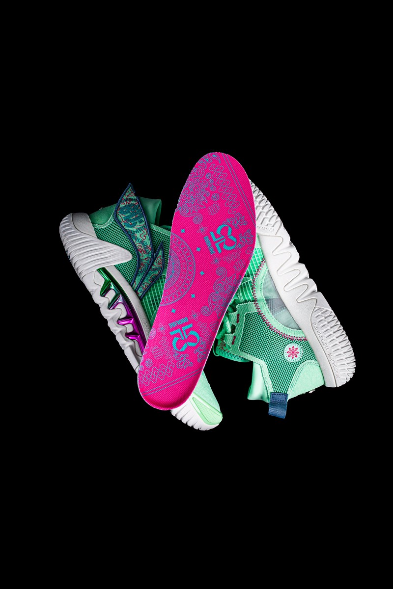 鞋舌上印压 “惟楚有材” 字样,彰显城市限定身份的同时,表明了此次配色主题。