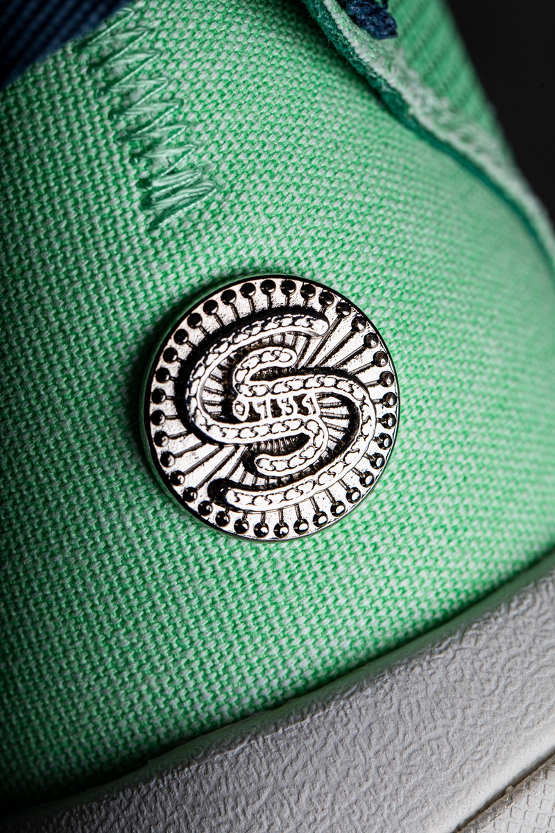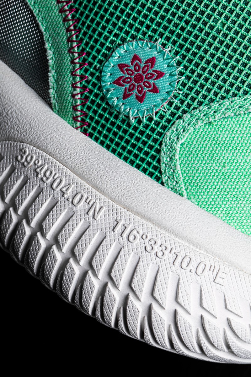 鞋面的帆布材料亦与苗族传统服饰相呼应,和大网格的网眼编织在一起增添层次感。