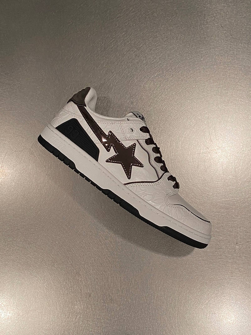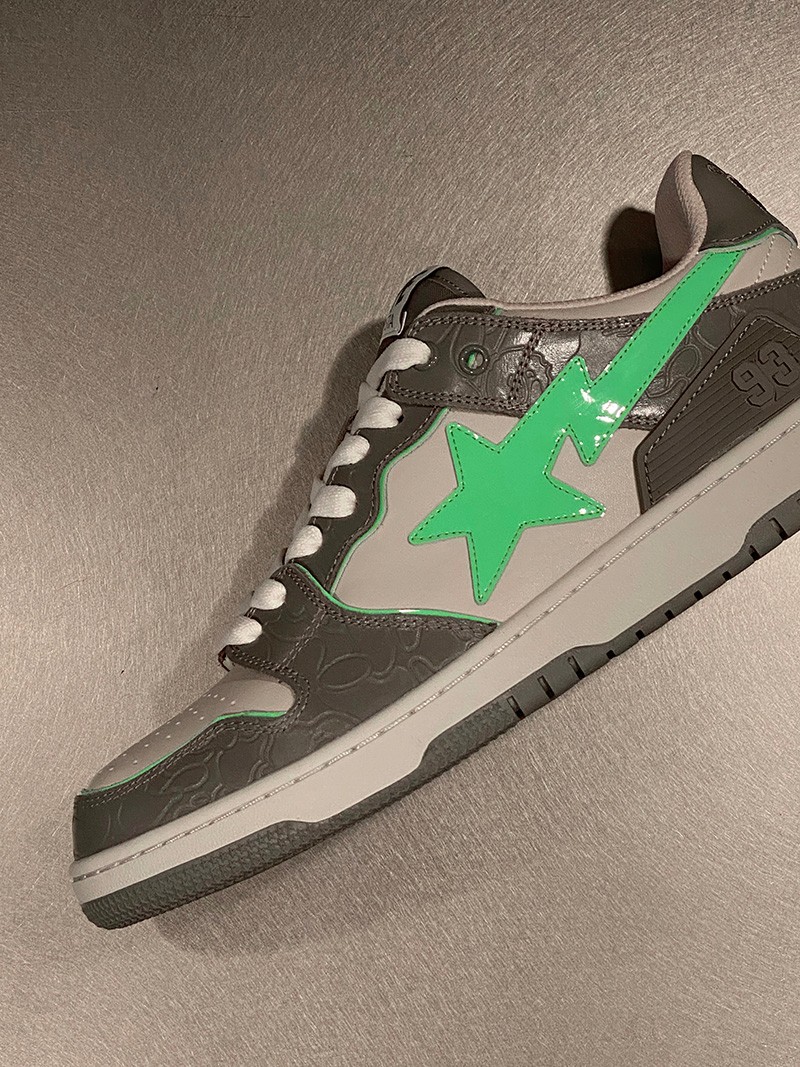 作为街头潮流的常青树,BAPE® 旗下鞋款持续推陈出新,近期多款新品浮现网络,让我们先睹为快! 其中 SK8 STA 分别带来灰绿、白橘、黑银、白银四款配色,鞋身均暗藏 BAPE® 标志性迷彩暗花示人,搭配反差色调的漆皮 Logo,低调奢华。 此外还有一款 BLOCK STA HI 一并曝光,高帮造型搭配魔术贴设计,释放出浓郁的复古气质。 传闻将于近期上架发售,SK8 STA 定价 ¥2199 RMB,BLOCK STA HI 则定价 ¥1999 RMB,感兴趣的小伙伴不妨耐心等待啦!