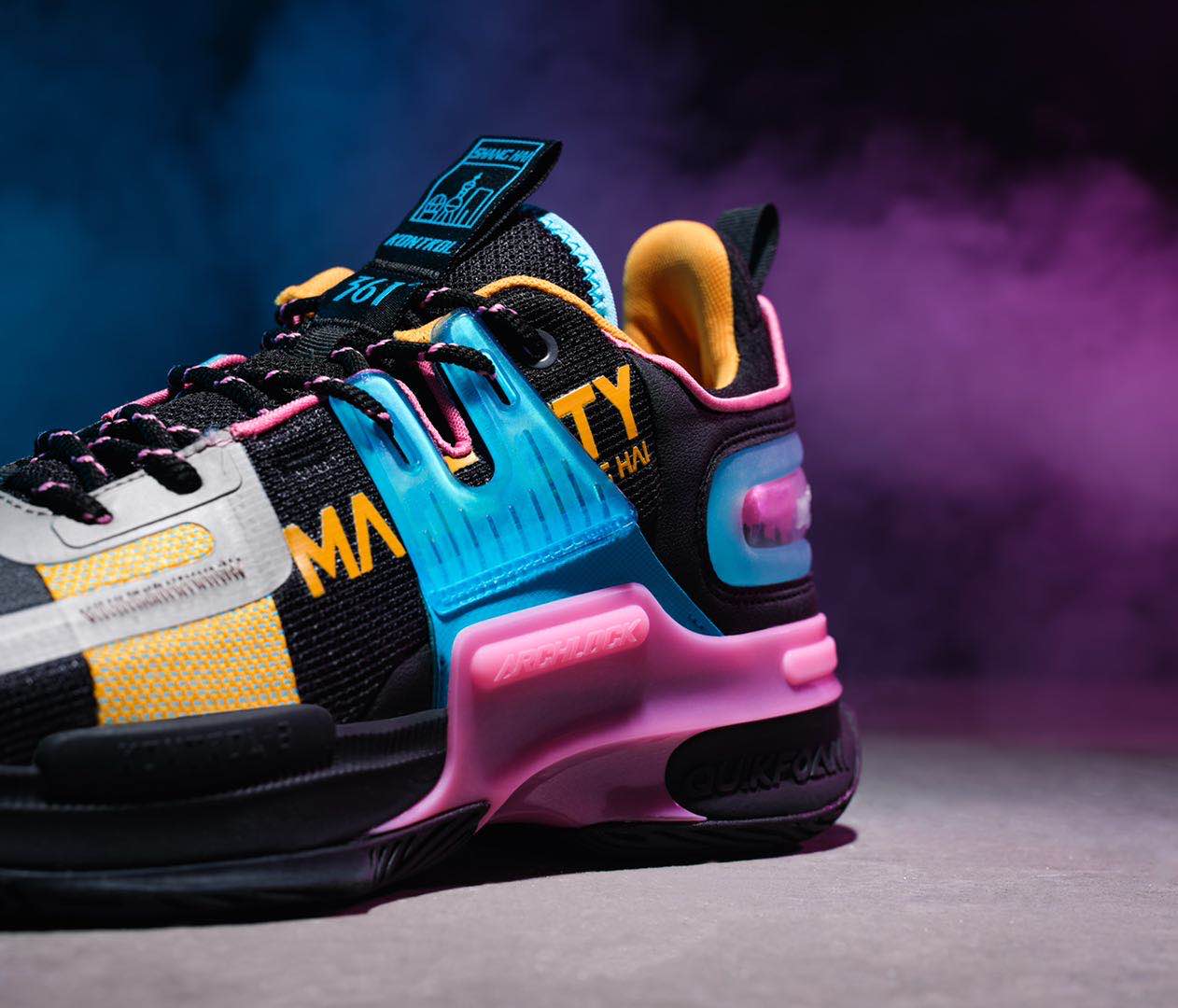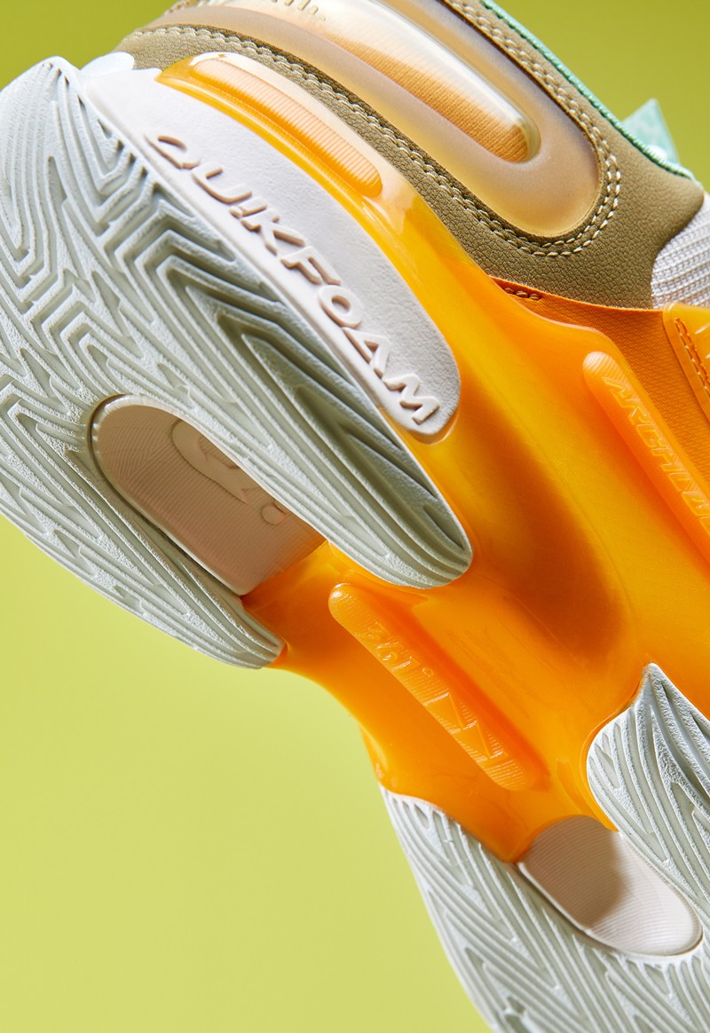 功能方面,全鞋最为显著的结构在于中底足弓使用了全包围的 “ARCHLOCK” 结构,配合鞋面足弓良好的支撑性,保证运动时的足踝力线处于比较中正的位置,保护足部避免发生过度形变。