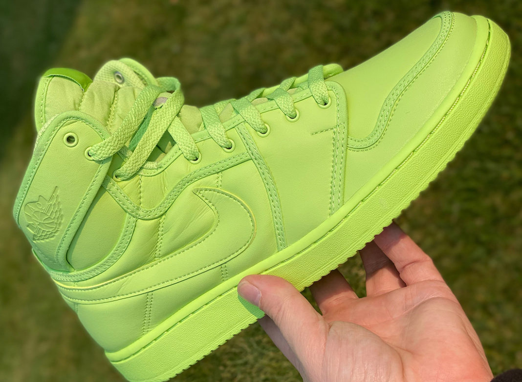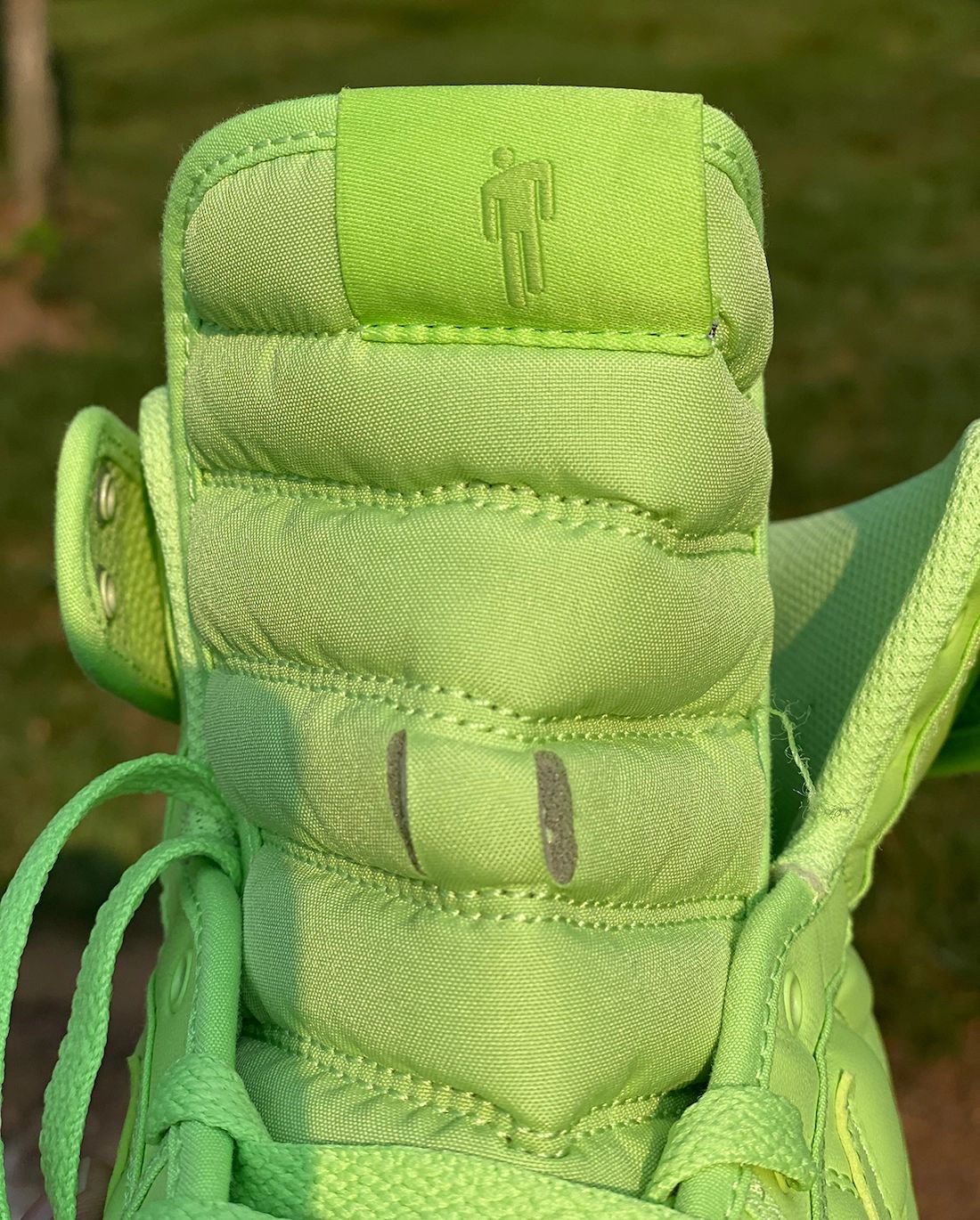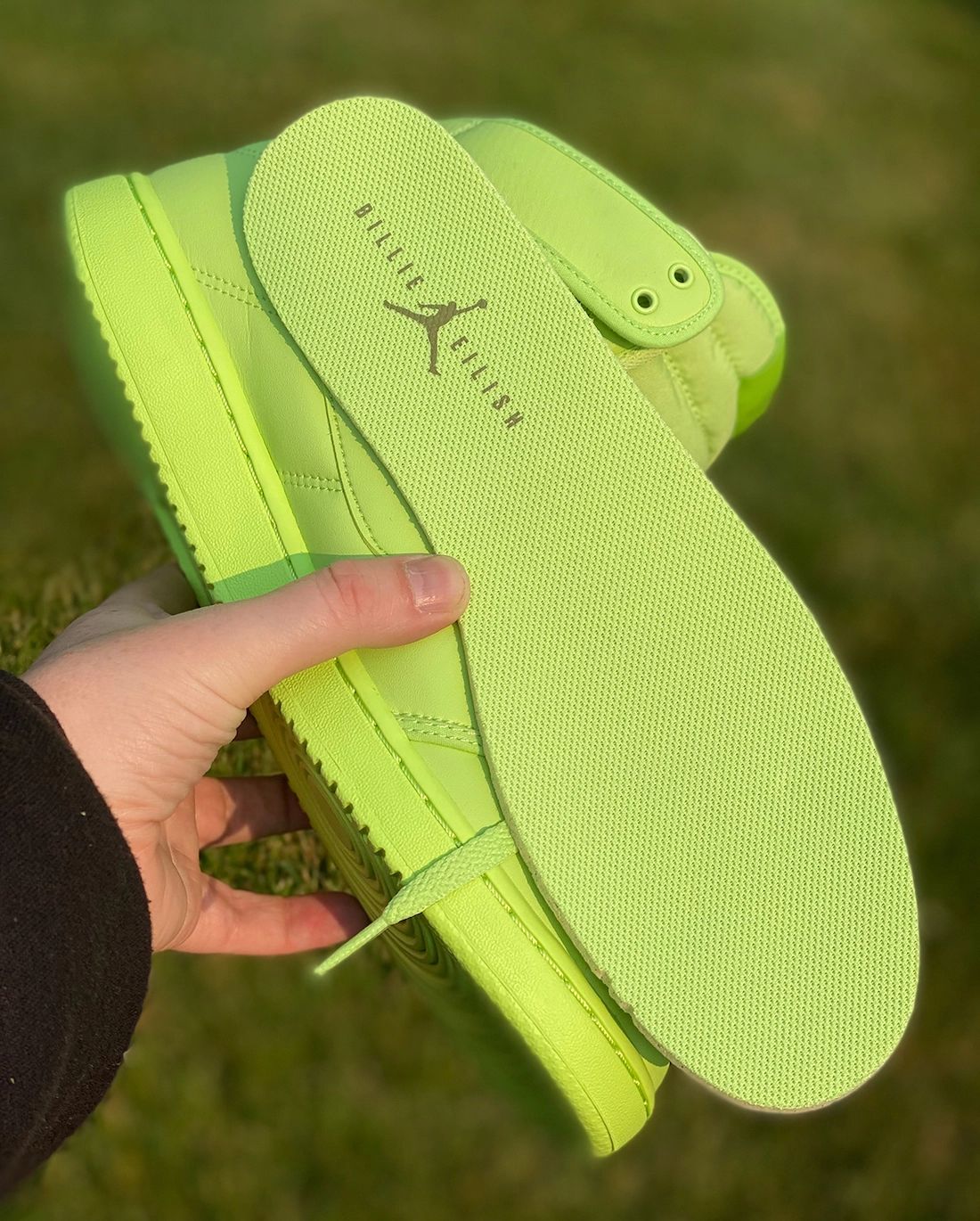 先来看看这双 Air Jordan 1 KO,通体采用荧光绿装扮,这也是 Billie Eilish 最爱的颜色。