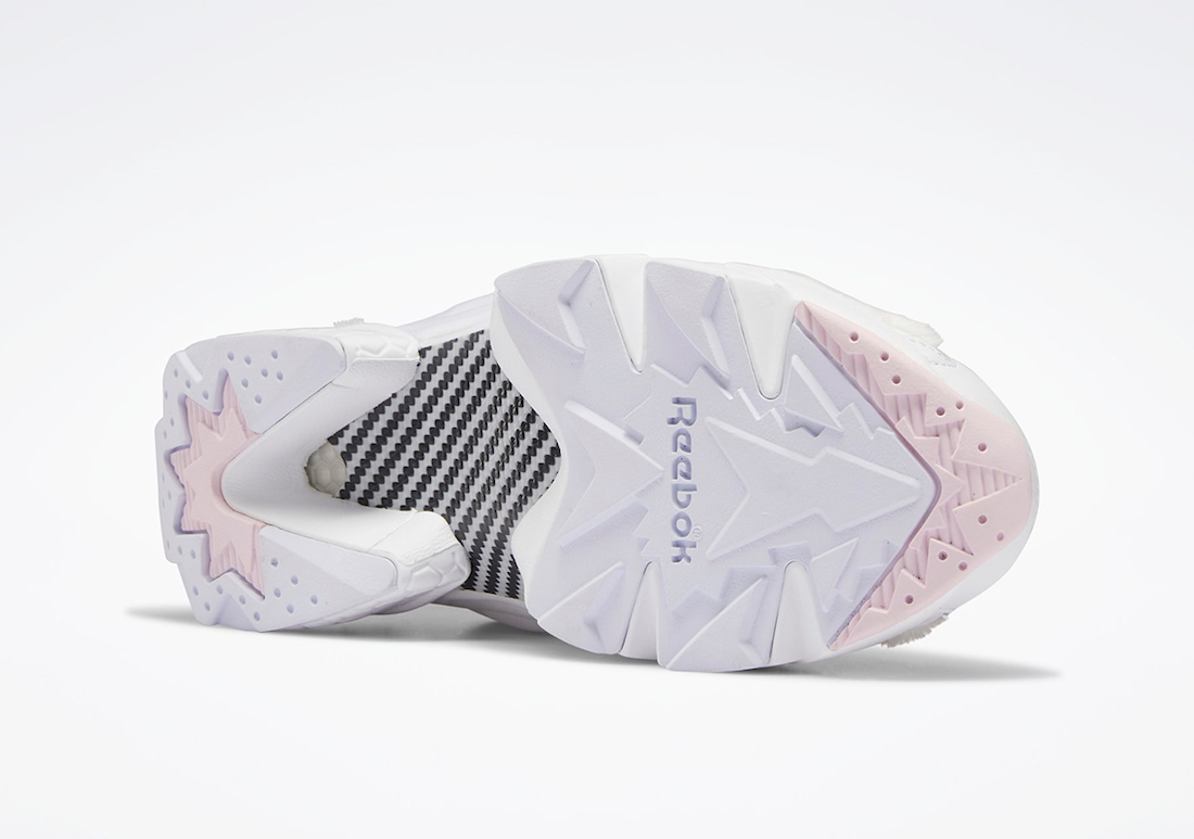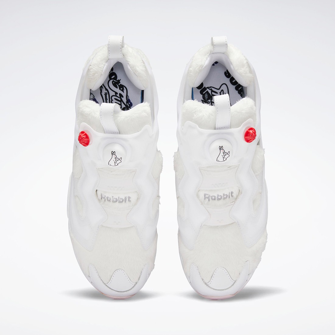 鞋舌上的「PUMP BUTTON」充气按钮上印有 Fxxking Rabbits (#FR2)Logo,彰显联名配色身份。