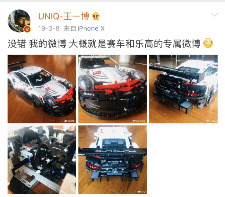 王一博曾说自己的微博,就是赛车和乐高的专属微博。