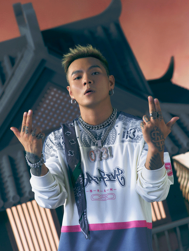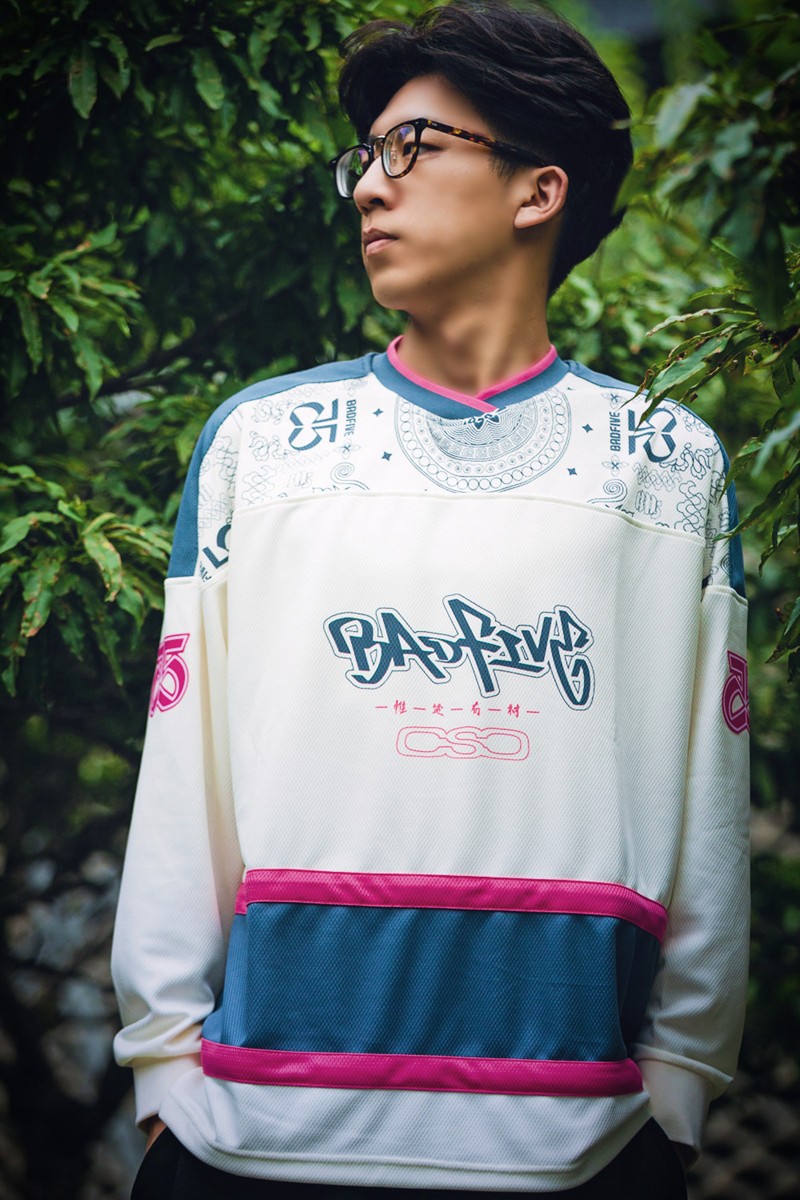 第二件长袖 T 恤设计则融合了复古街头风格和苗族传统图案。