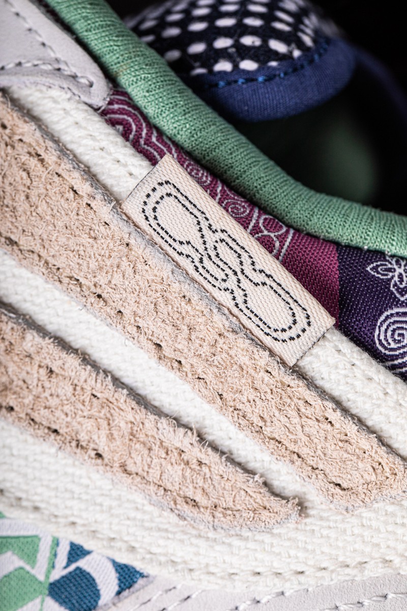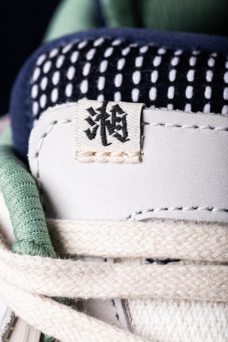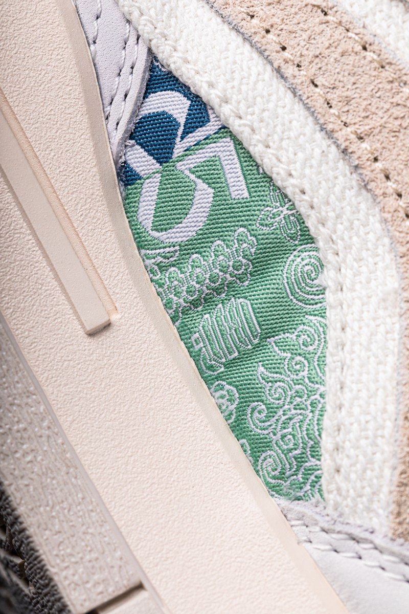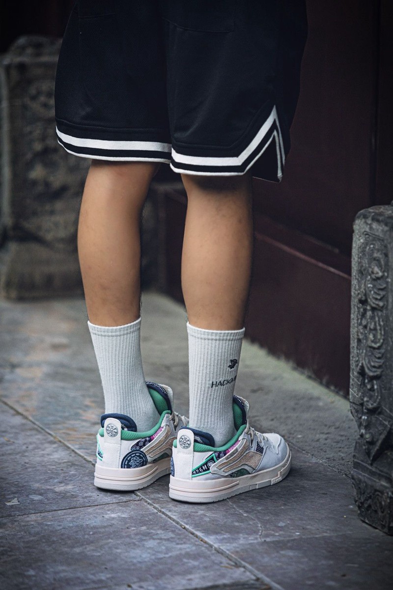 鞋侧仍可以看见同反伍 2 相同的苗族传统图案,并以翡翠绿色为背景。