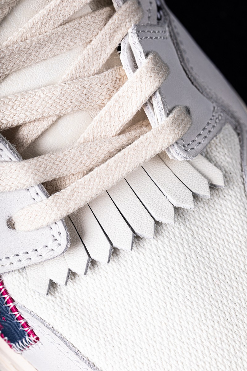 鞋带处加入大片皮质流苏装饰。