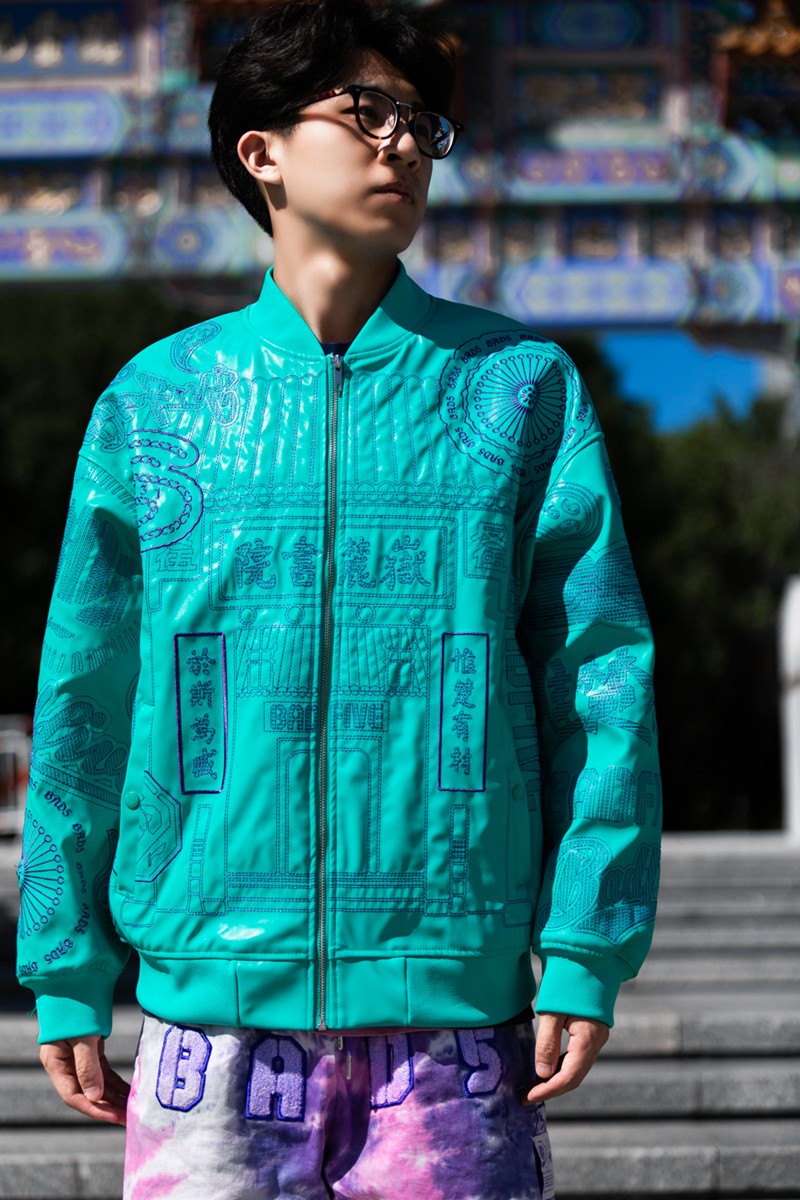 其中最吸引小编眼球的莫过于这件夹克单品,质感十足的漆皮表面绣满此次主题相关的各式图案。