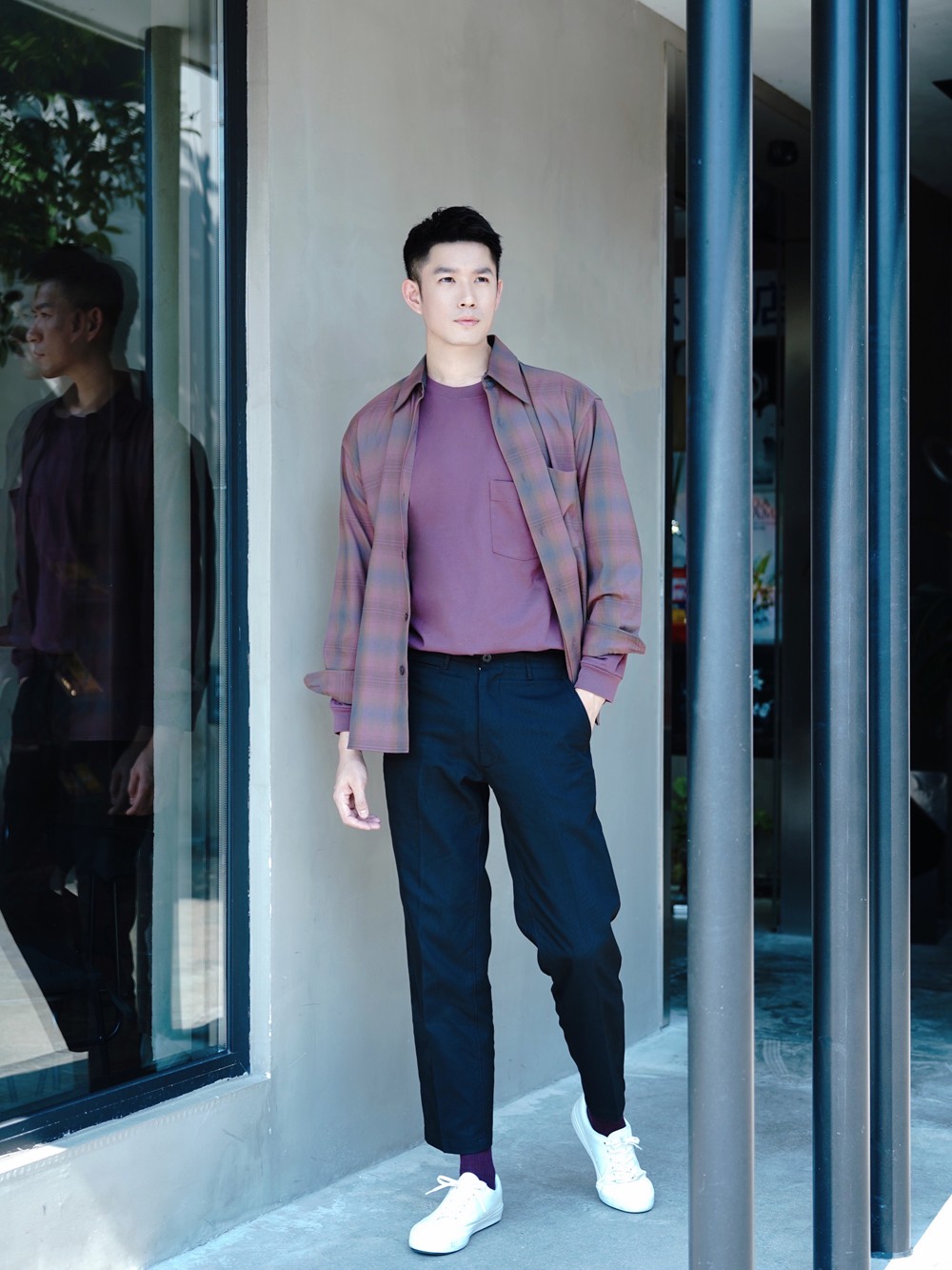 摇粒绒外套内搭格纹衬衫,可以说是最具代表性的轻户外搭配方式之一。
