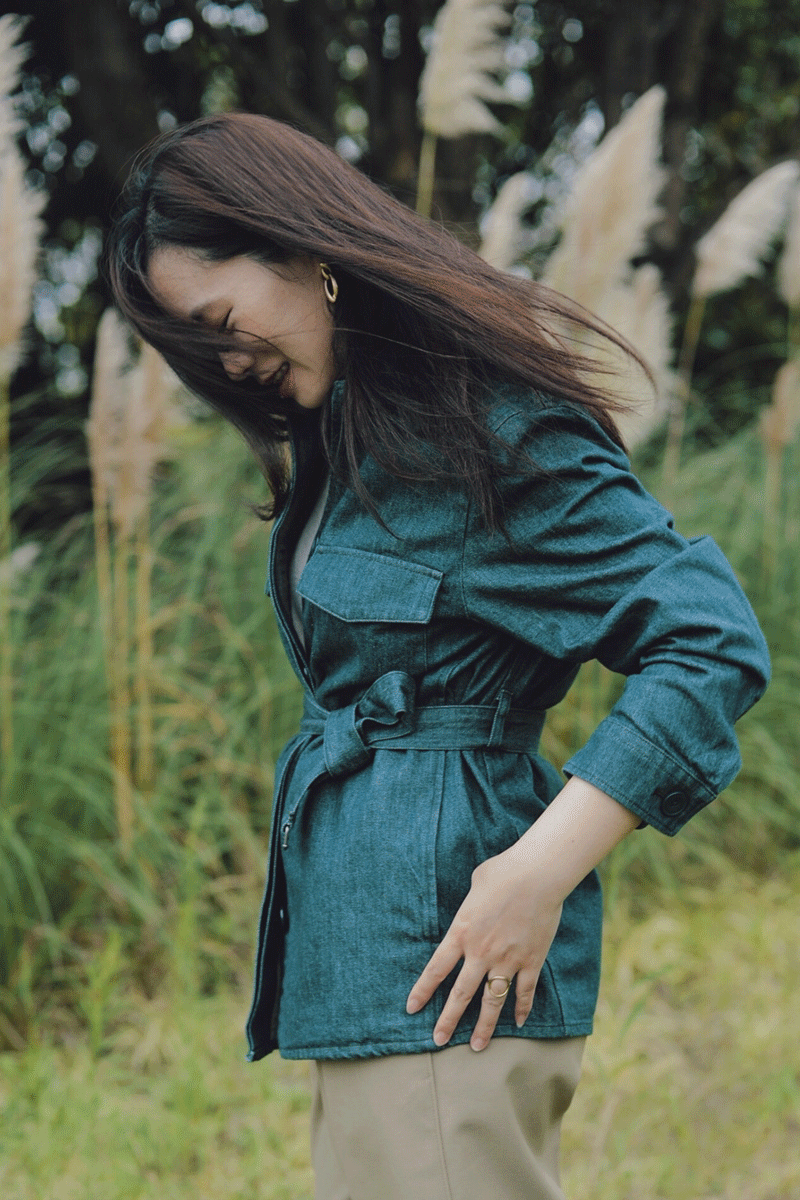 全新牛仔工装外套,百搭又实用,新增绿色调设计更显独特,特别增添腰带勾勒线条,显瘦又显潮。