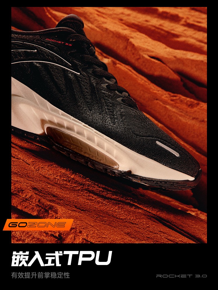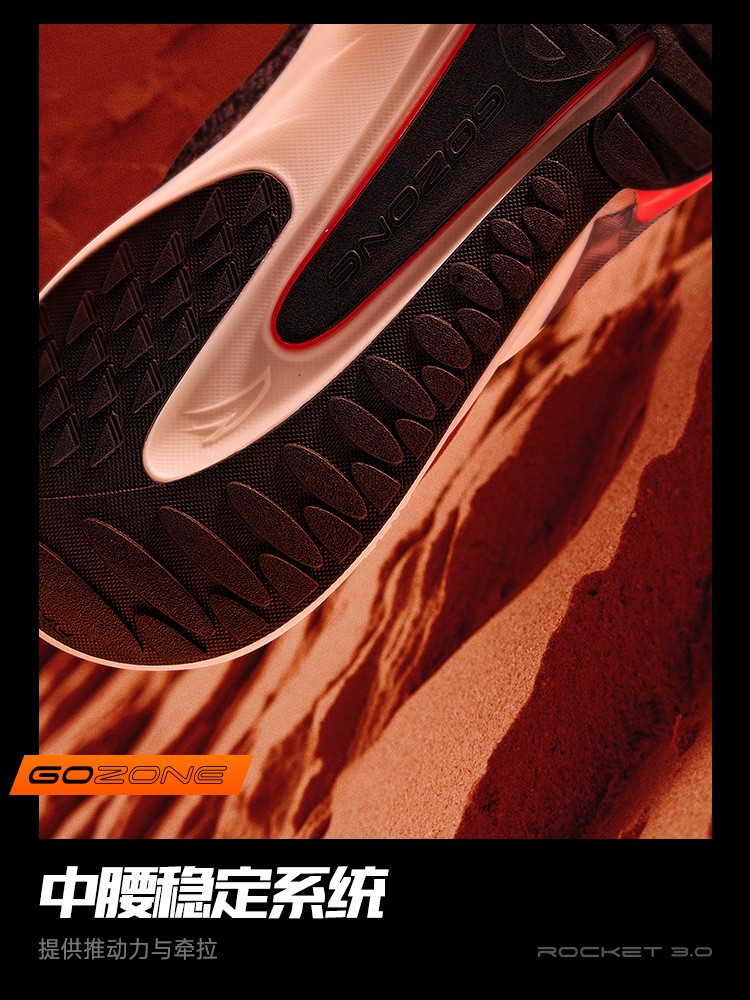 灵感来自火箭推进器的镂空结构,强化回弹与缓震性能。