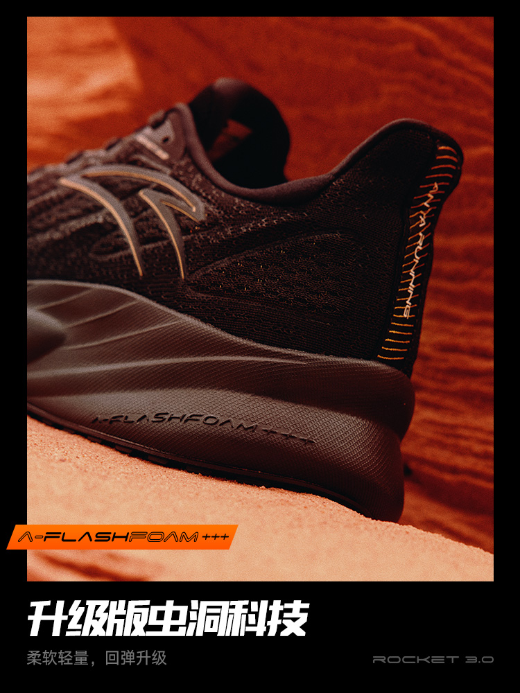 今年这款已经是火箭鞋第三代鞋型,最大特点就是搭载了升级版虫洞科技 A-FLASHFOAM+++。
