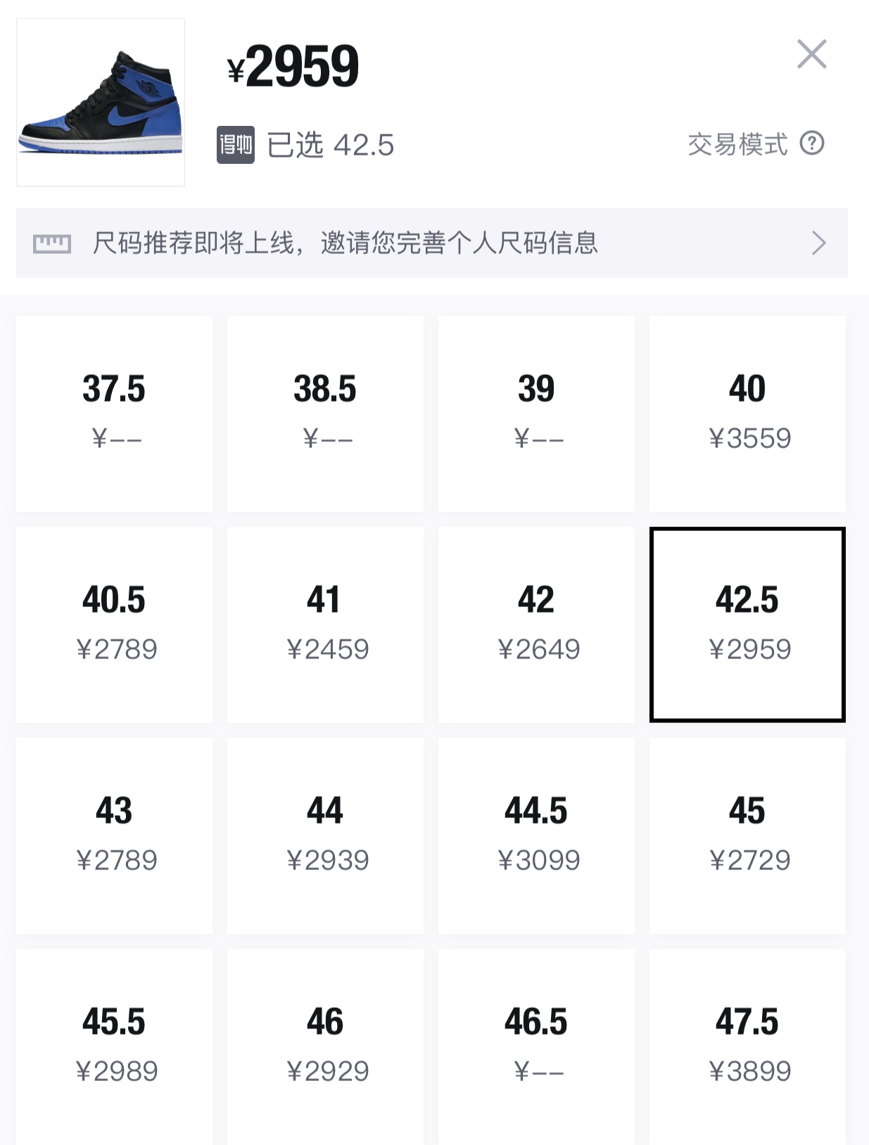 目前,人称「倒闭蓝」的 Air Jordan 1 黄金码近 ¥3000 元。